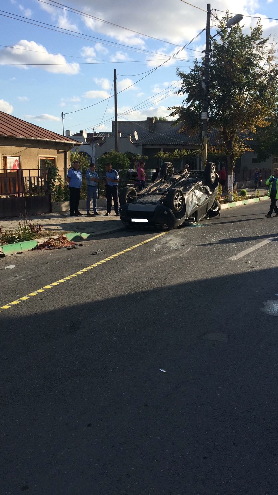 Mașină răsturnată în urma unui accident pe o stradă din Techirghiol. A intervenit descarcerarea
