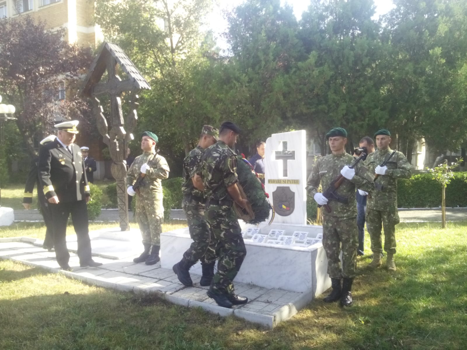 Ceremonia s-a desfășurat la ansamblul comemorativ al scafandrilor din incinta instituției, unde s-a oficiat o slujbă religioasă de pomenire și s-au depus coroane de flori în memoria celor care și-au pierdut viața servind patria.