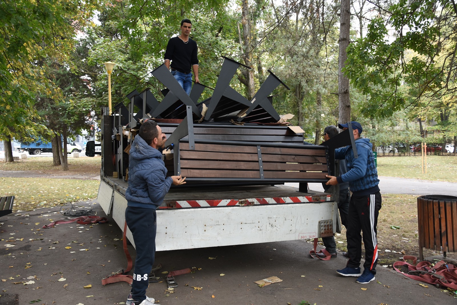 Operațiunea a început deja, prima oprire a fost făcută în Parcul Tăbăcărie unde angajații de la Serviciul Amenajari Urbane au instalat 100 de coșuri noi de gunoi și 200 de banci.