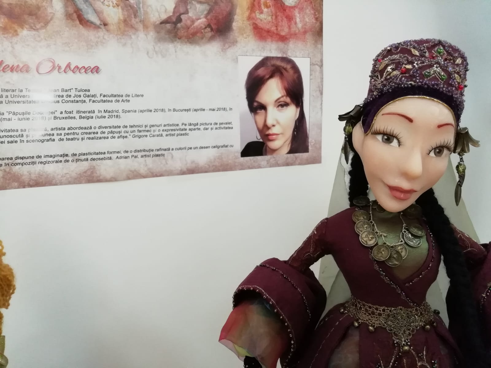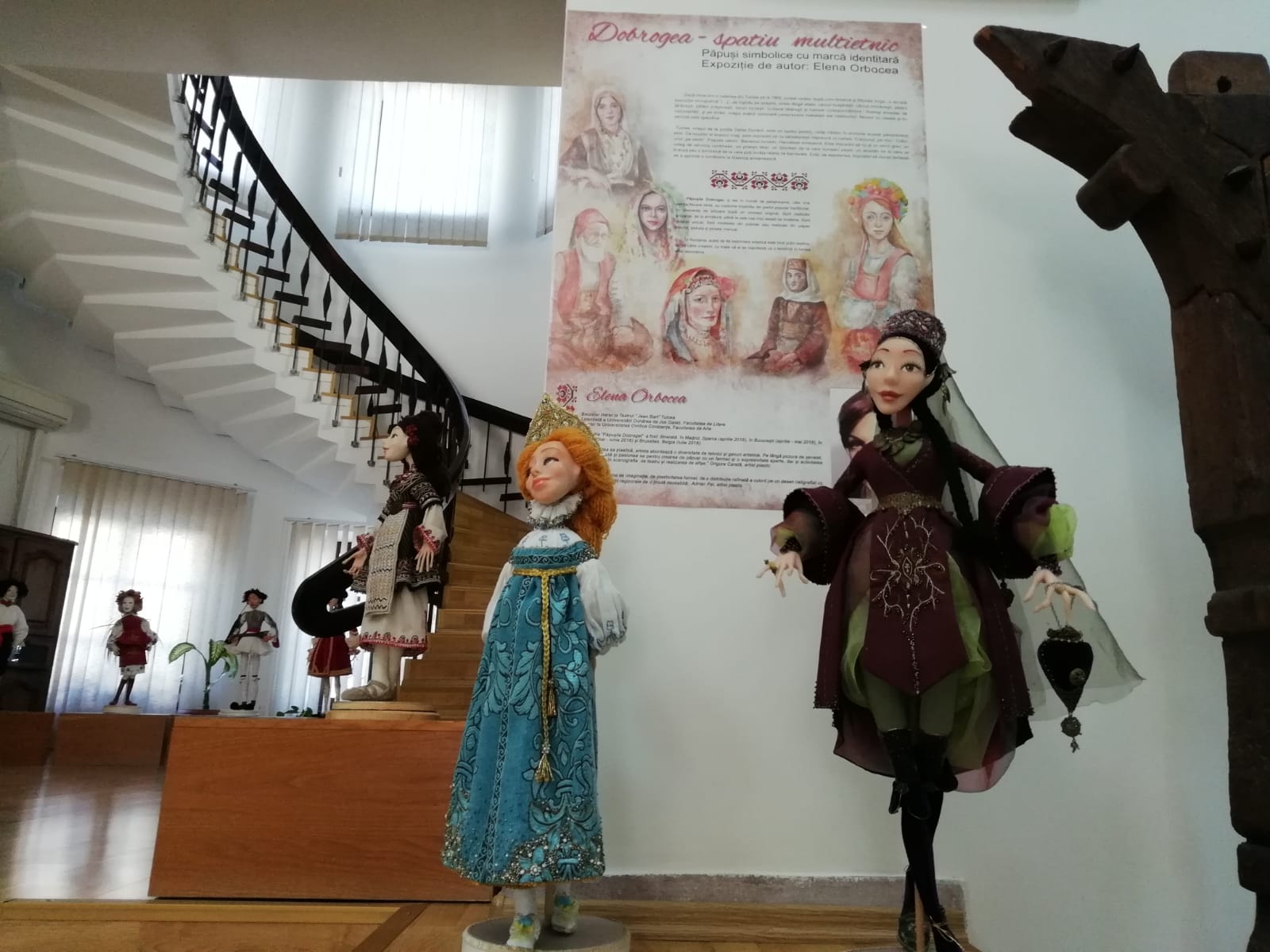 „Este vorba despre o manifestare foarte frumoasă, dedicată Centenarului Marii Uniri, dar și celeilalte sărbători – 140 de ani de la Unirea Dobrogei cu țara. Expoziția este deschisă la parterul muzeului și cuprinde un număr de 14 păpuși care sunt inspirate din spațiul multietnic dobrogean. Elena Orbocea a făcut pentru asta documentare, a studiat cataloagele de costum popular existente, a făcut vizite la fiecare etnie din Dobrogea, deci s-a documentat, dar a trebuit să creeze niște costume reduse la dimensiunile păpușilor. În felul acesta au fost stilizate motivele decorative, în sensul că acestea au fost prelucrate și simplificate, păstrând, însă, elementele esențiale. Elena Orbocea cunoaște foarte bine tipologia costumului popular, în sensul că ea a trebuit să respecte liniile de croi. A făcut tipare, a învățat punctele de cusătură și a creat costume pentru fiecare etnie. Ceea ce mi se pare foarte interesant este modul în care a modelat chipul fiecărei păpuși, astfel încât să redea fizionomia fiecărei etnii. Păpușile sunt vesele sau supărate, altele sunt cu o privire ghidușă, altele – puse pe taifas, și în felul acesta ele sunt și aranjate în expoziție. Interesant este că fiecare păpușă are un nume, care este specific etniei pe care o reprezintă“, a declarat Maria Magiru, directorul Muzeului de Artă Populară Constanța.