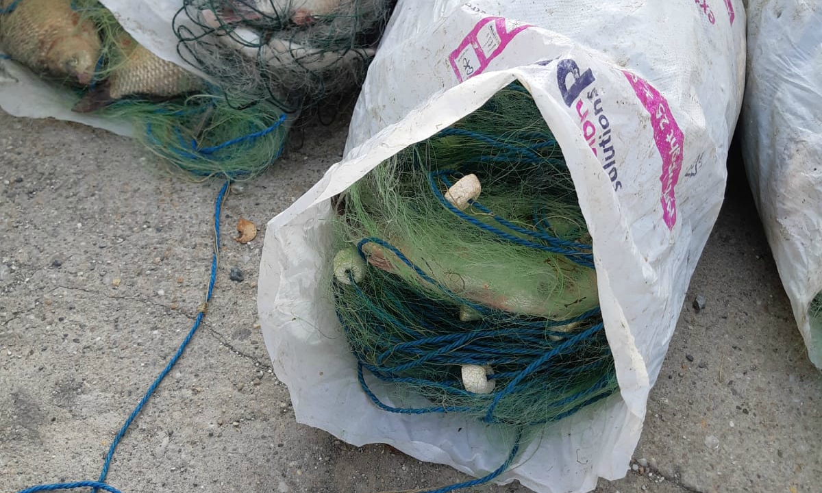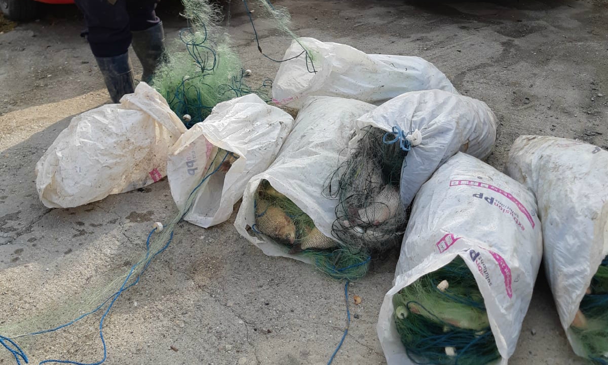 Autoturismul cu care transportau peștele a fost oprit în zona Lacului Sinoe, din județul Constanța. În urma controlului, polițiștii de frontieră au descoperit în portbagajul acestuia, 11 plase de tip monofilament în care se aflau 99,80 kilograme caras, pentru care persoanele în cauză nu deţineau documente legale.