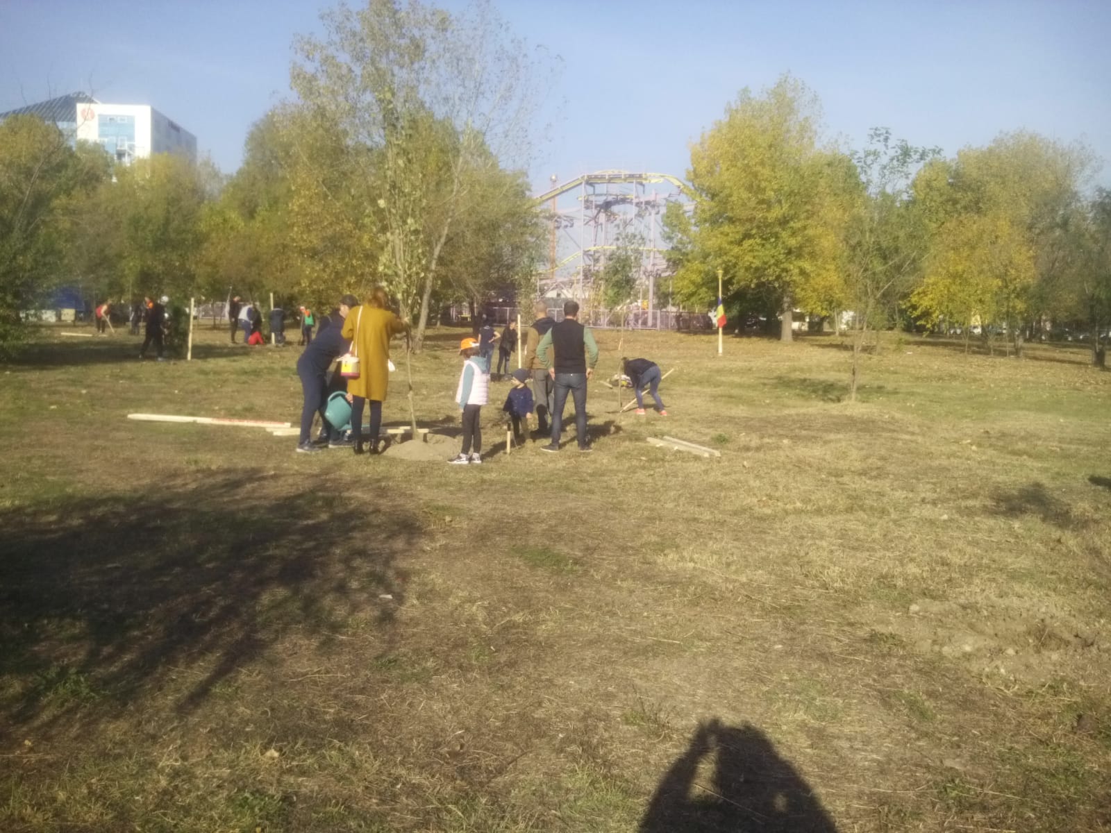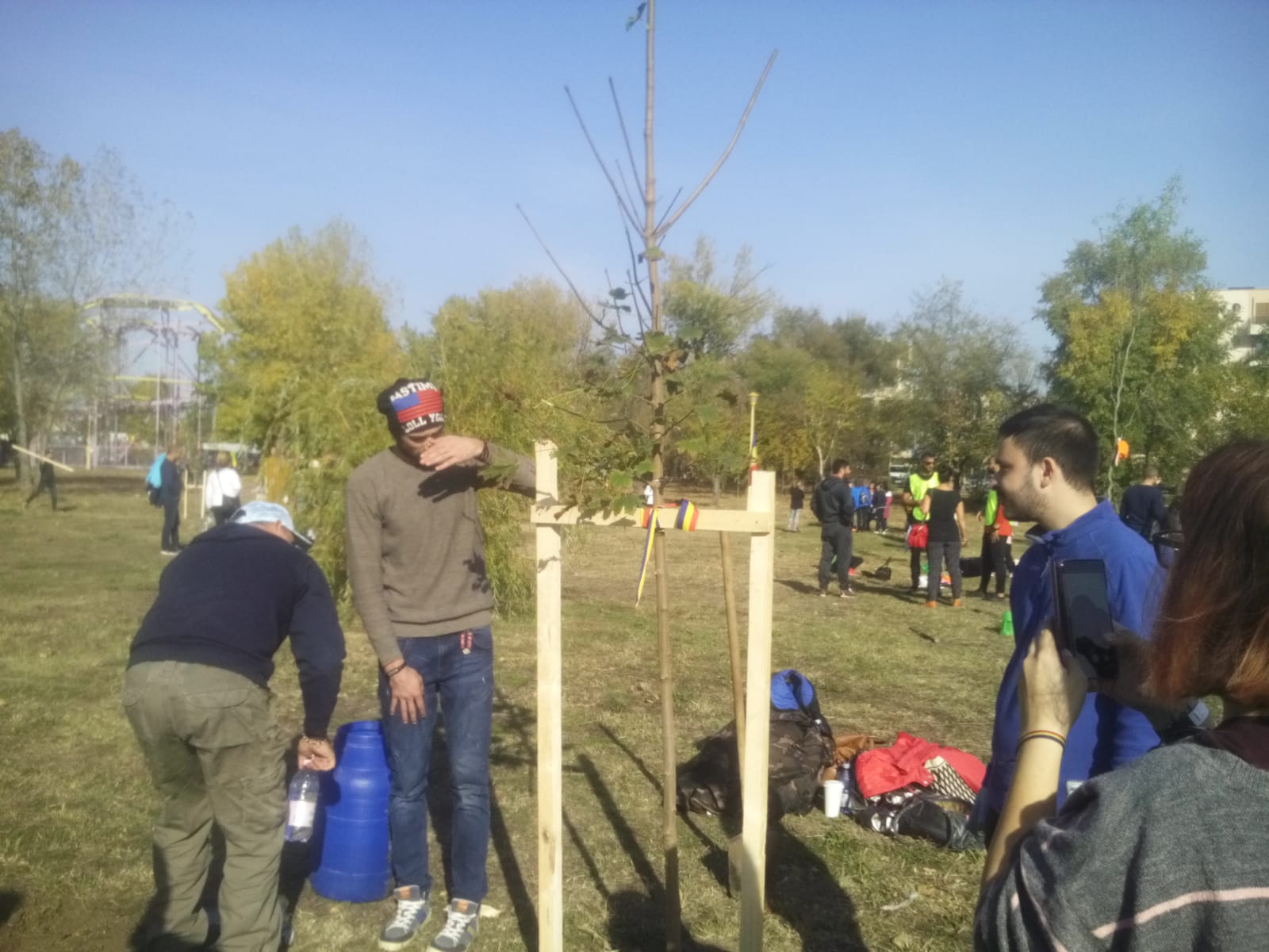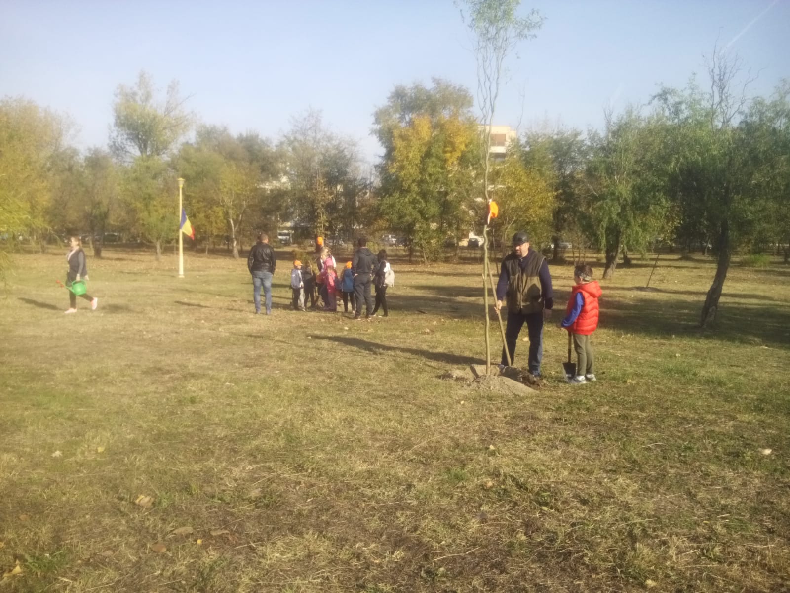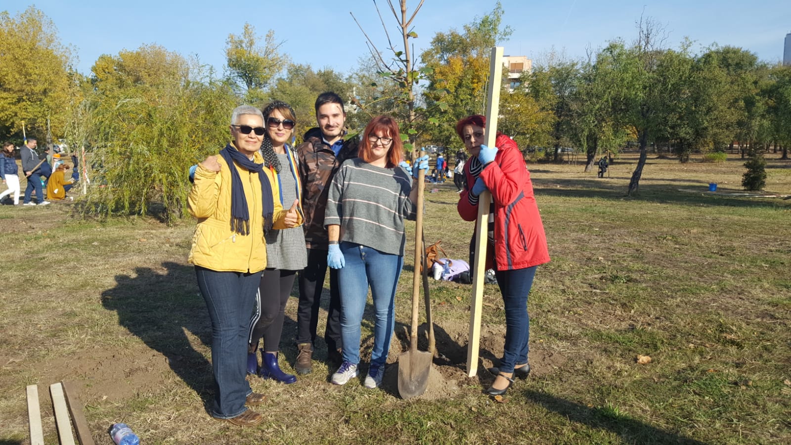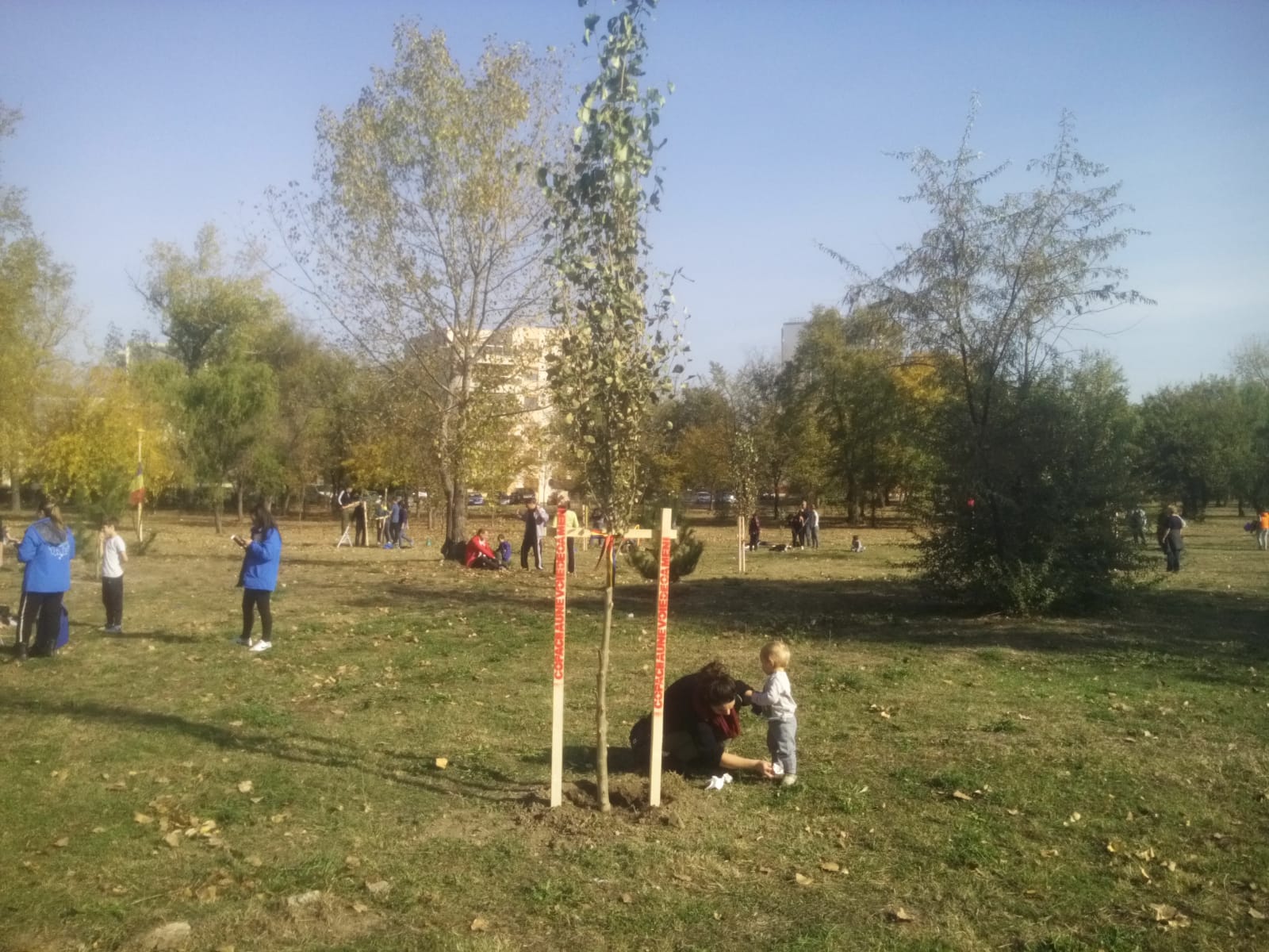 Aproximativ 200 de voluntari au luat parte la acțiunea ecologică de astăzi. Au fost plantați arbori din cinci specii: catalpa, salcie creață, pin negru, ienupăr și paltin de câmp, iar fiecare pomișor a primit în dar de la cei care l-au planta o panglică tricoloră.