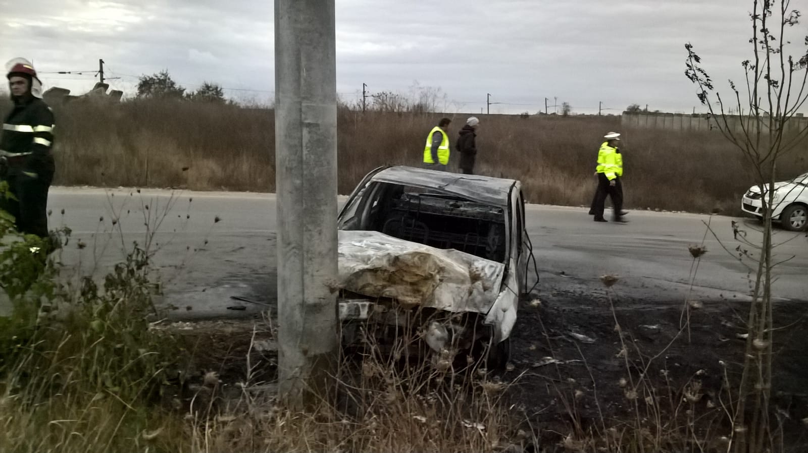 Șoferul , un tânăr în vârstă de 18 ani, a pierdut controlul volanului la trecerea la nivel cu calea ferată, iar mașina s-a izbit de un stâlp de beton, după care a luat foc. Din fericire, a reușit să iasă la timp din autoturismul cuprins de flăcări.