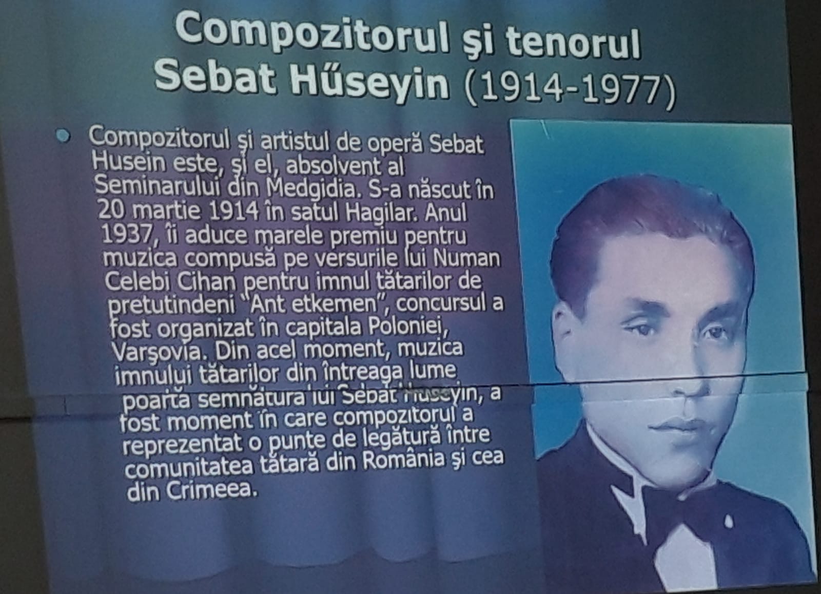 În continuare, drd. Ghiulşen I. Ismail a evidențiat personalităţile tătare şi contribuţia lor în domeniul revigorării şi promovării cântecelor autentice. El a vorbit despre compozitorul şi artistul de operă Sebat Husein, interpreta-avocat Cadrie Nurmambet, solista de muzică populară Chiamiran Chivu, rapsodul-poet Gevat Raşid şi despre folcloristul Nagi Ali Cafer.