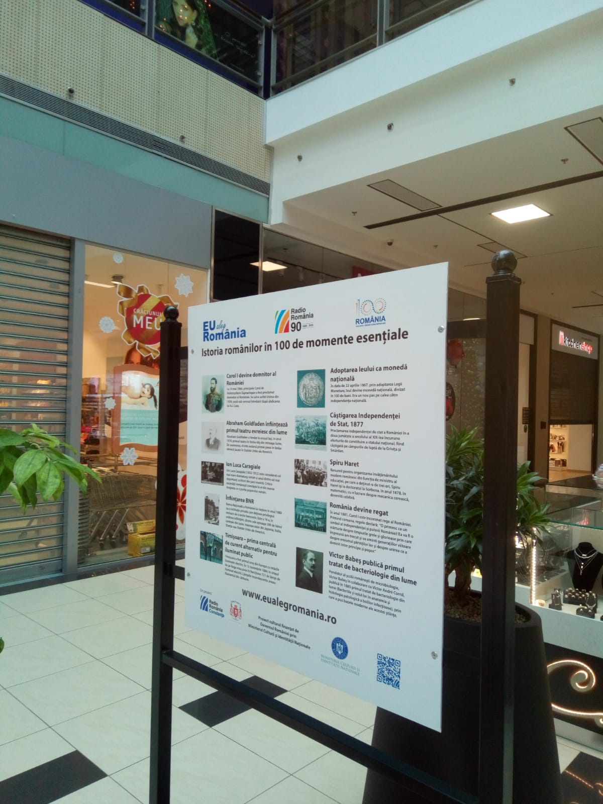 Expoziția „Eu aleg România – Istoria românilor în 100 de momente esențiale” inițiată de Radio România, organizată de Radio Constanța și susţinută de Guvernul României, prin Ministerul Culturii şi Identităţii Naţionale, a fost mutată, din Parcul Arheologic Constanța, la City Park Mall, unde poate fi vizitată până pe 20 decembrie.