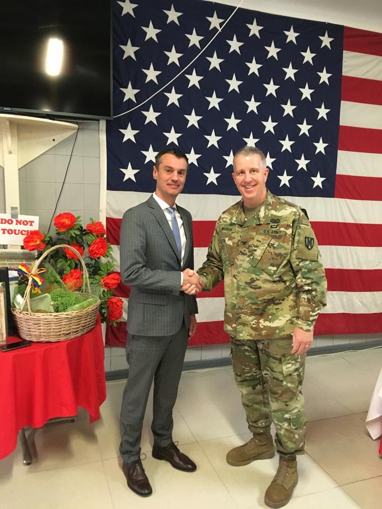 „De Ziua Recunoștinței, ar trebui cu toții să ne luam un răgaz să reflectăm asupra binecuvântărilor pe care le primim în viața noastră. Eu sunt recunoscător pentru multe lucruri – pentru familia mea, pentru această mare națiune pe care o slujesc, partenerii și aliații excepționali cu care lucrăm aici și multe alte lucruri cu care m-a binecuvântat Dumnezeu”, a spus comandantul bazei militare, unde sunt trupe americane si canadiene.