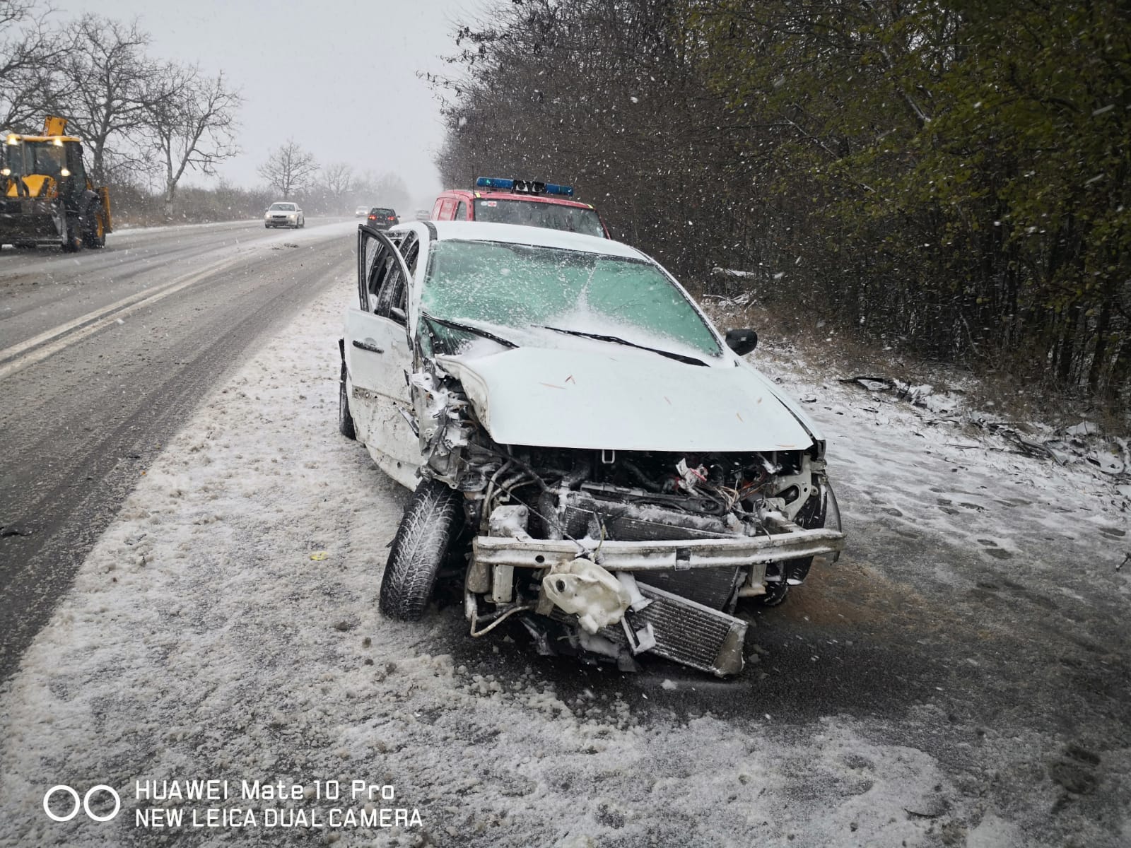 Accident rutier cauzat de viteză și zăpadă, între Neptun și Olimp. Un copil de 7 ani a ajuns la spital FOTO