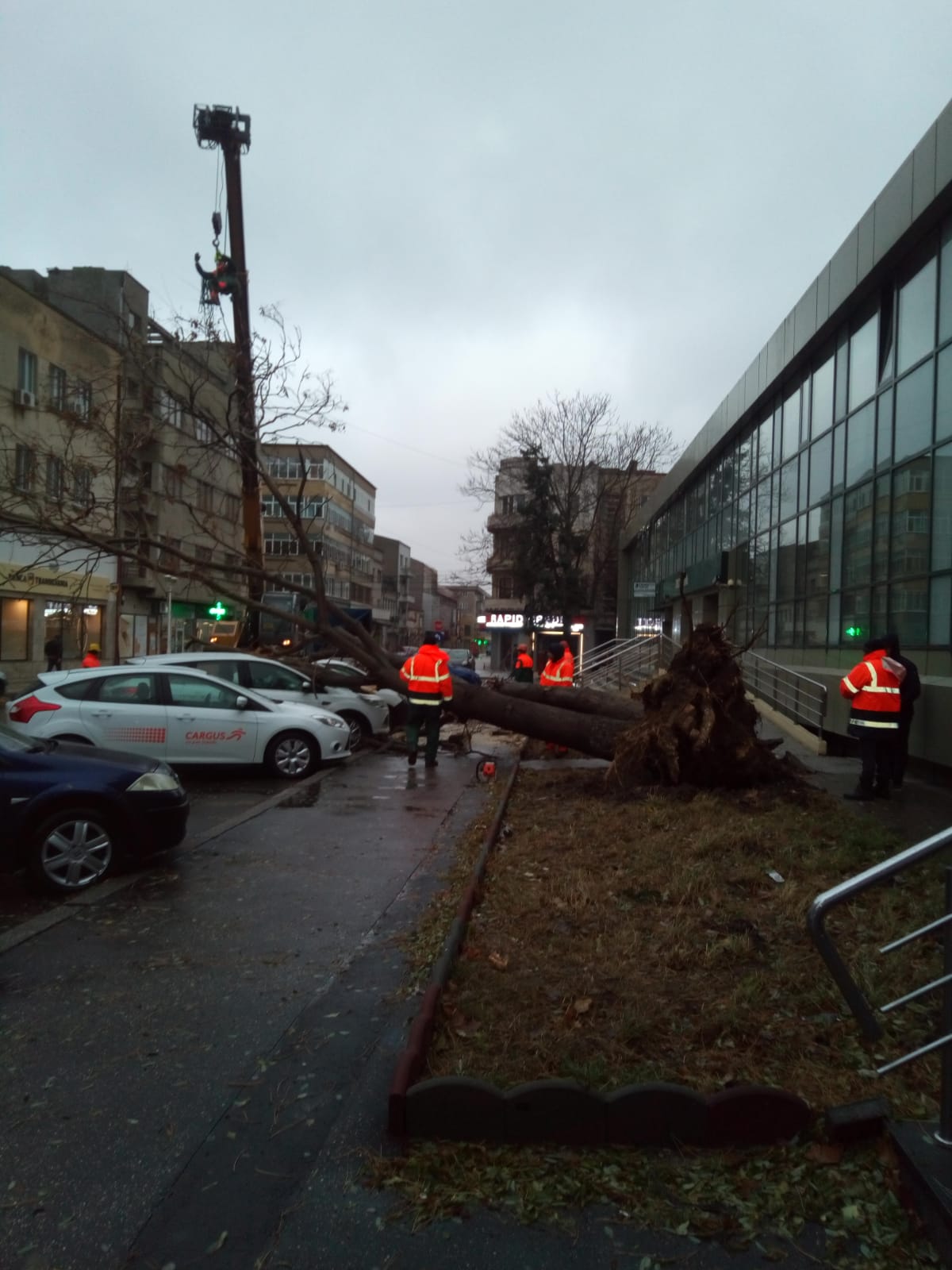 CONSTANȚA/FOTO: Mașini avariate de un copac doborât de vânt