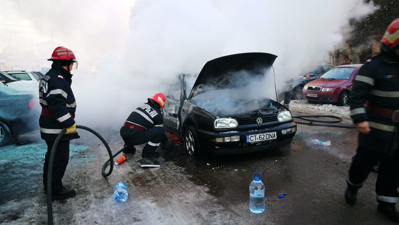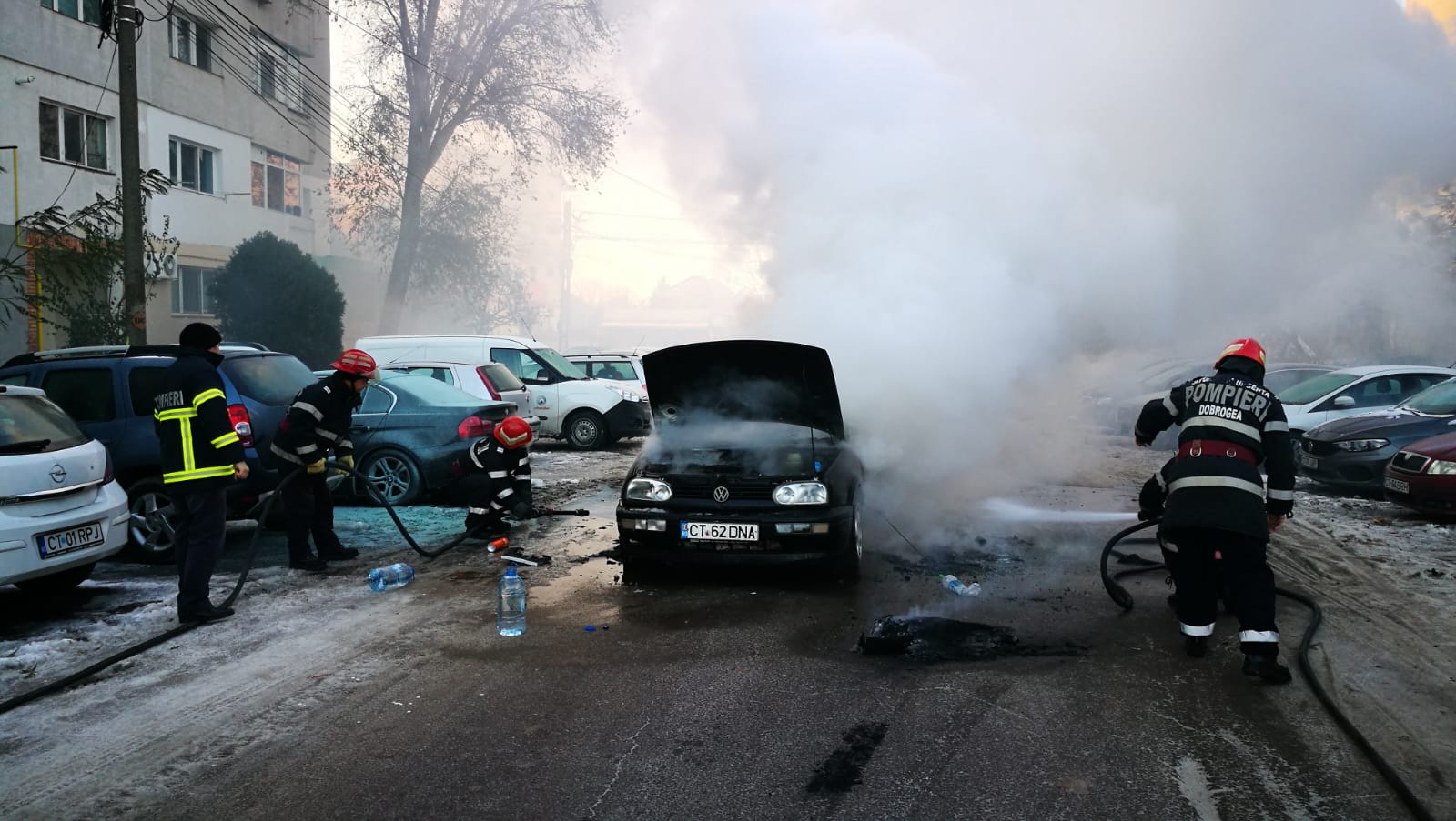 Pompierii ISU Constanța au fost solicitați în această dimineață, să intervină pentru stingerea unui incendiu la o mașină, pe bulevardul Aurel Vlaicu din Constanța, în zona Anda.