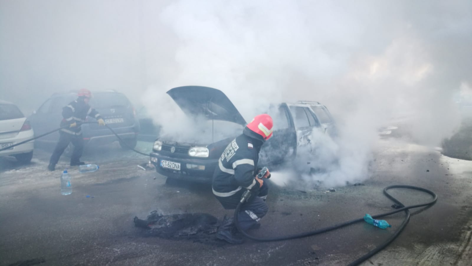 SAJ Constanța a informat că mașina a luat foc în mers, la Anda (vis a vis de Adivin).