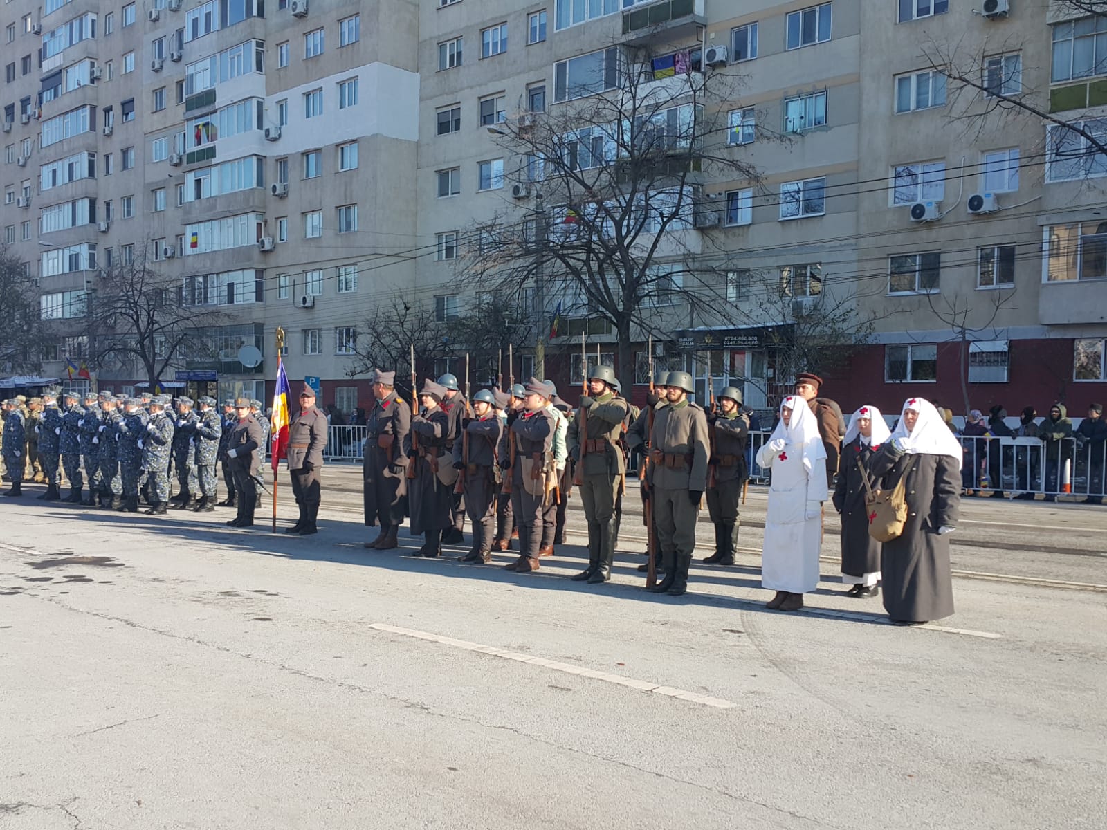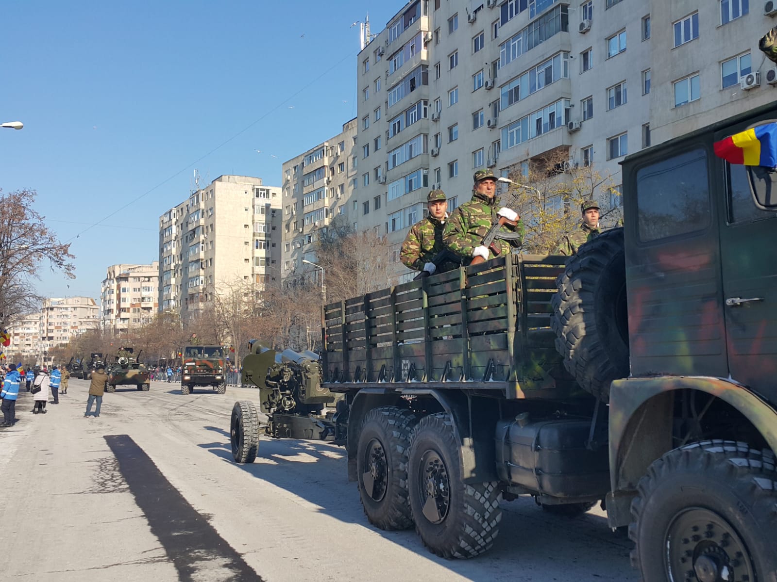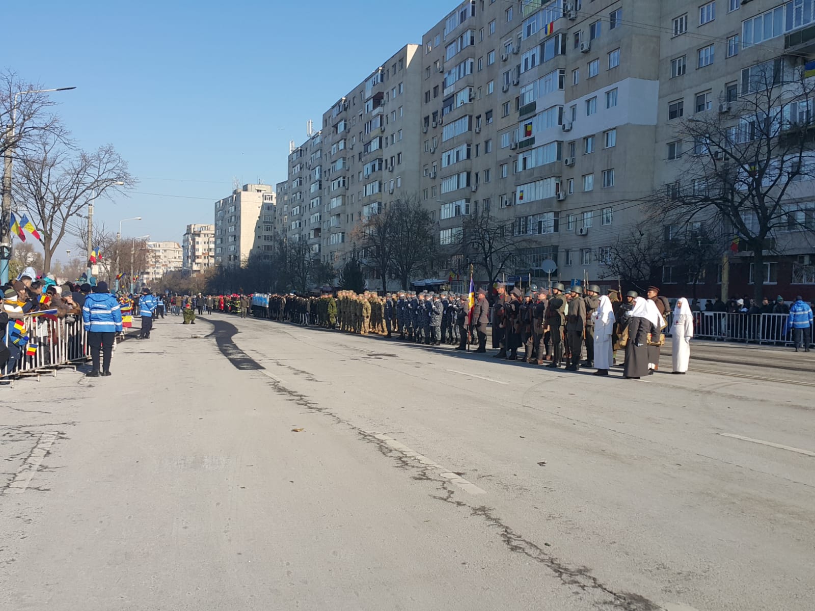 De la ora 11,00 pe Bulevardul Alexandru Lăpuşneanu, în faţa Casei de Cultură a Sindicatelor, va avea loc o ceremonie religioasă şi defilarea blocului de paradă alcătuit din plutoanele de militari cu tehnică militară, şi în premieră, în acest an, va participa şi un pluton al Poliţiei Locale Constanţa.