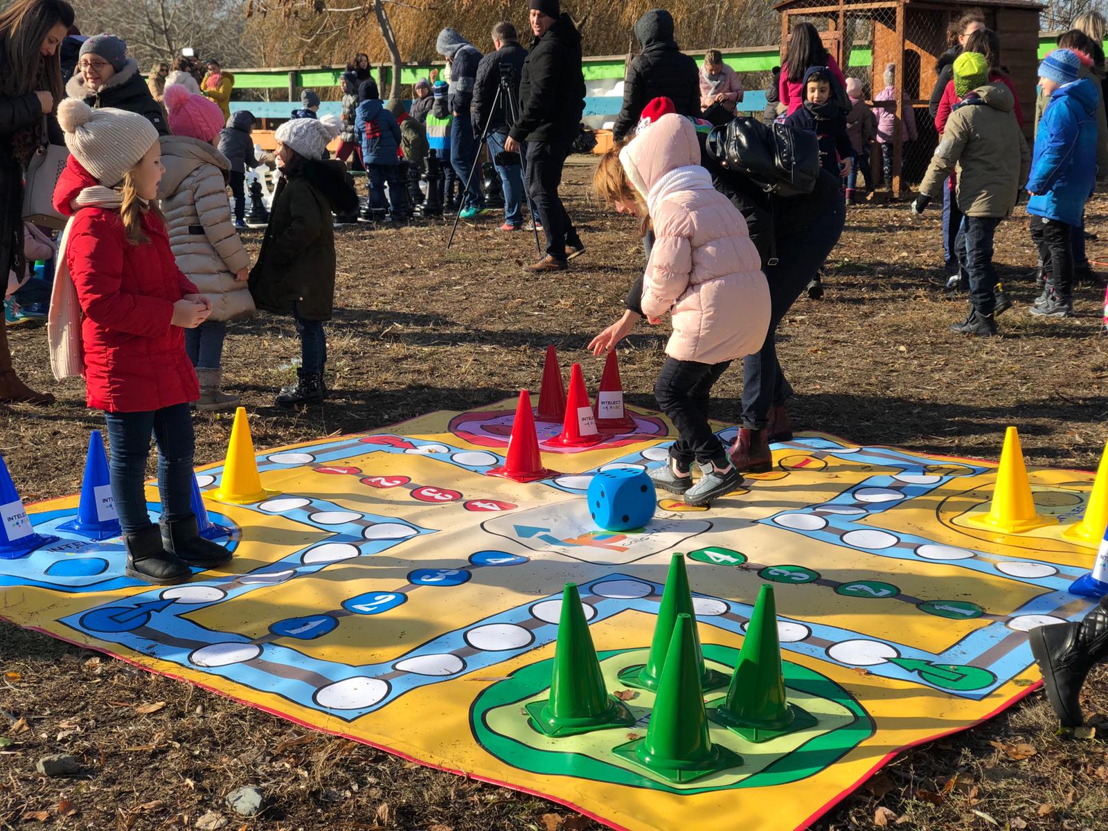 Copiii vor putea să joace în Intelect Parc, șah cu piese gigantice, Turnul instabil, Scrable – Jocul cuvintelor, x și 0, jocul Dame, joc de Cărți uriașe, dar și jocurile copilăriei care au fascinat generații întregi – Nu te supăra frate, Piticot și Roata Provocărilor. Toate aceste jocuri au fost concepute în marime uriașă, astfel încât să fie jucate în aer liber și să permită copiilor să facă mișcare în timp ce le joacă. Pentru bunicii și părinții care vin cu nepoții în parc, a fost instalat și un joc de table în mărime uriașă.