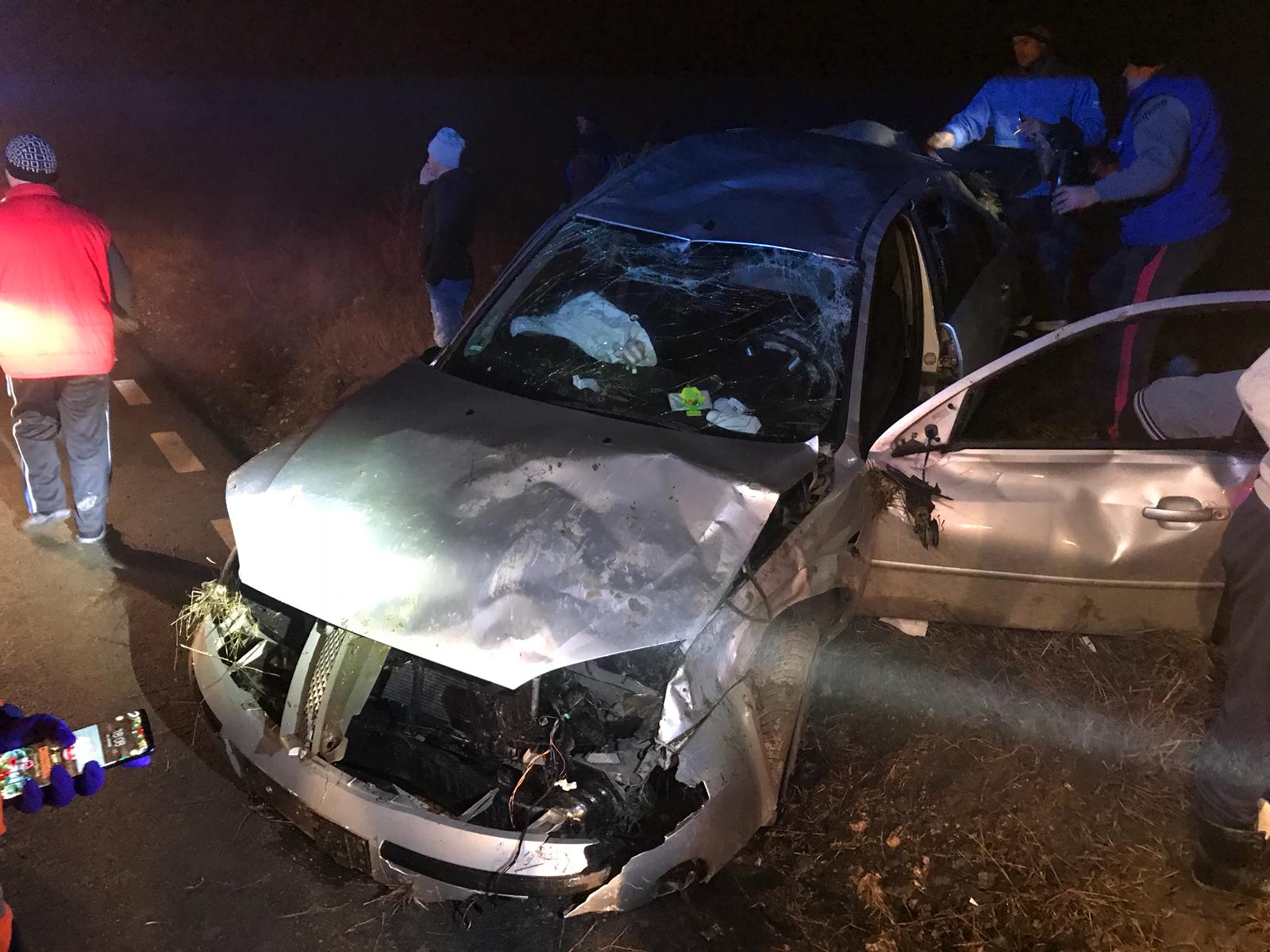 Conform celor aflați la locul accidentului, mașina s-a răsturnat, probabil din cauza neadaptării vitezei la condițiile de drum, în zonă fiind ceață densă, astfel vizibilitatea fiind redusă.