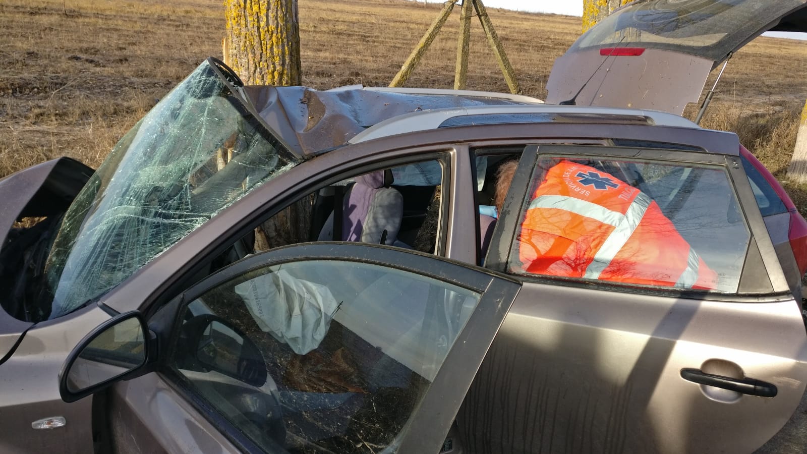 În accident a fost implicat un singur autoturism, în care era doar șoferul, o femeie de aproximativ 50 de ani.