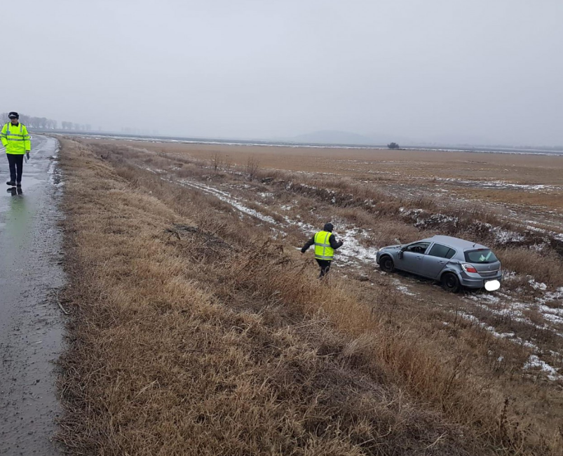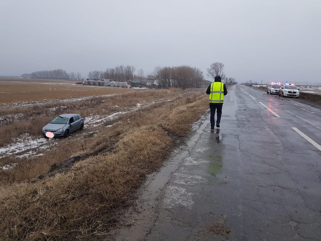 În dimineața zilei de 24 ianuarie 2019, un bărbat de 46 ani din localitatea Văcăreni, în timp ce conducea un autoturism pe DN22E, în afara localității I.C.Bratianu, nu a adaptat viteza de deplasare pe un carosabil alunecos, a pierdut controlul asupra direcției de mers și s-a răsturnat în afara părții carosabile.