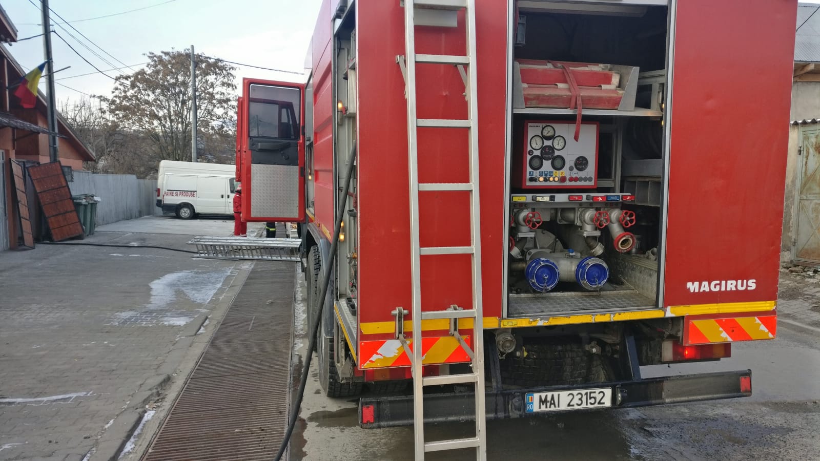 Pompierii s-au deplasat cu trei autospeciale de stingere cu apă și spumă și un echipaj SMURD.