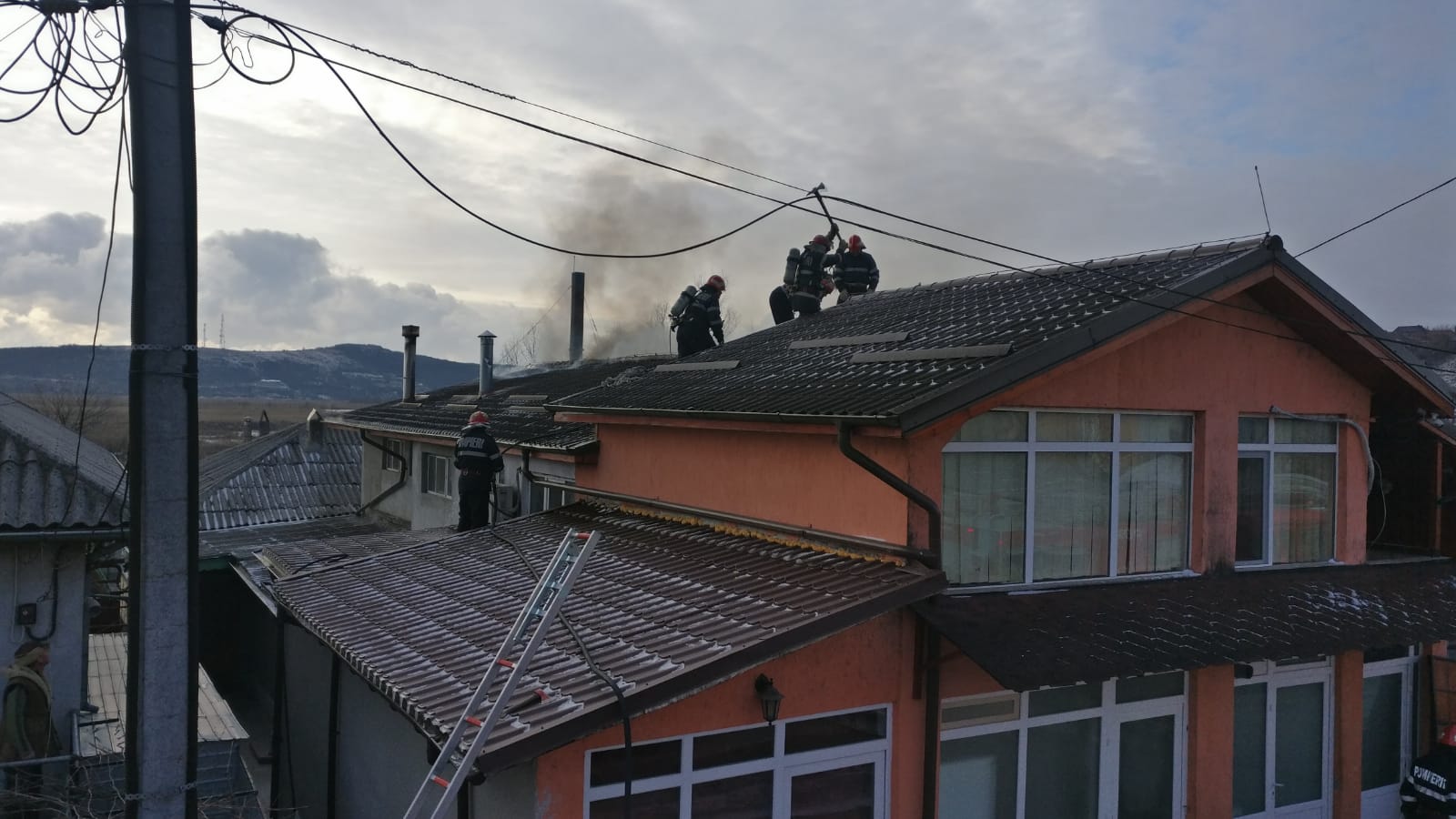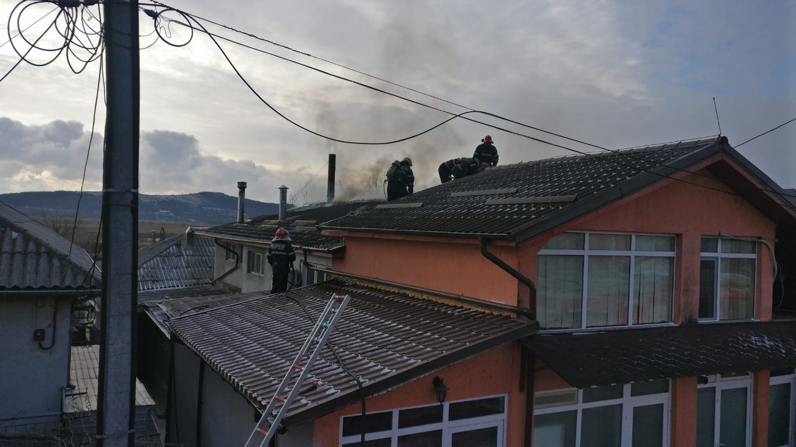 TULCEA/FOTO: Arde acoperișul unei case