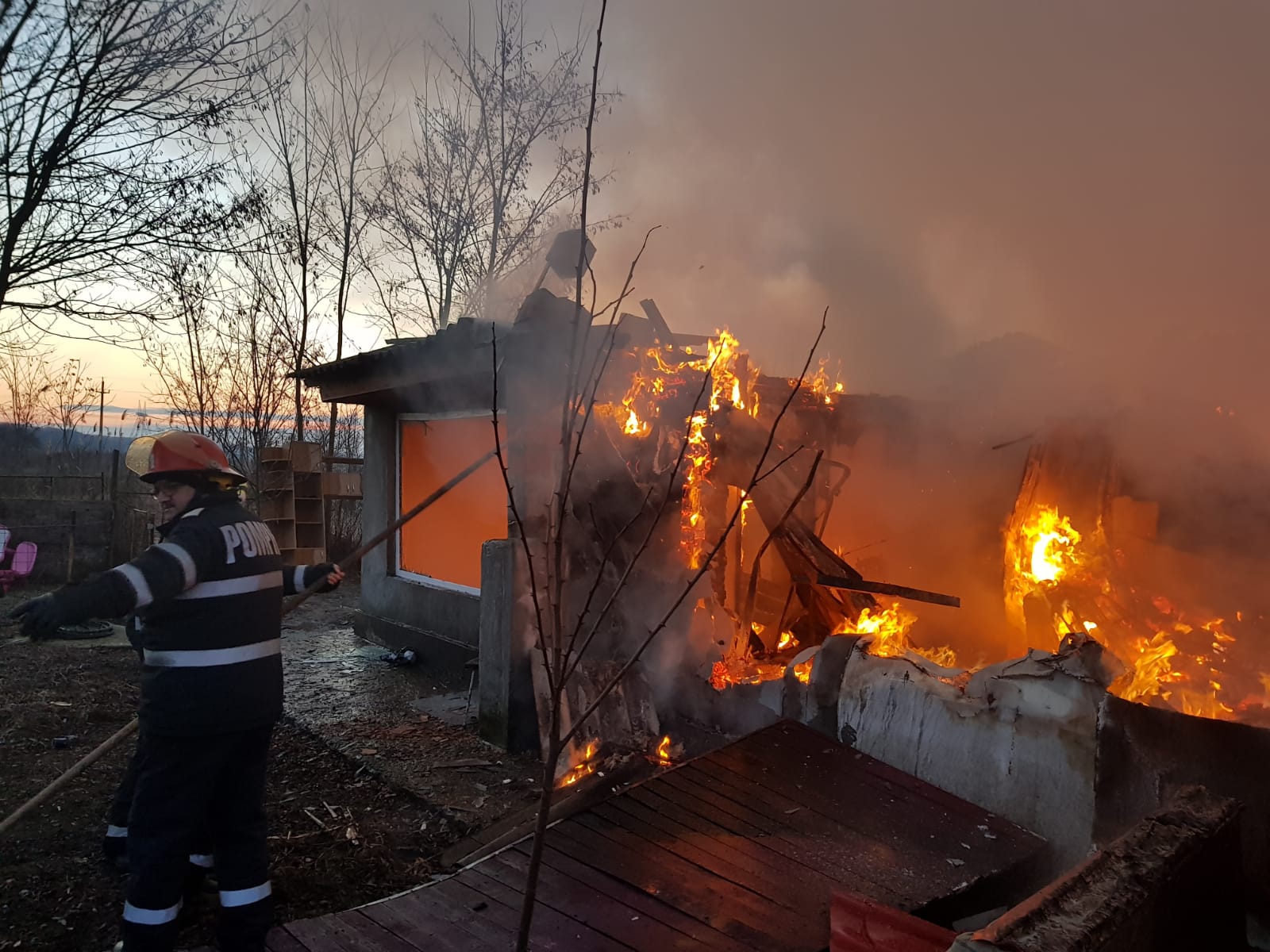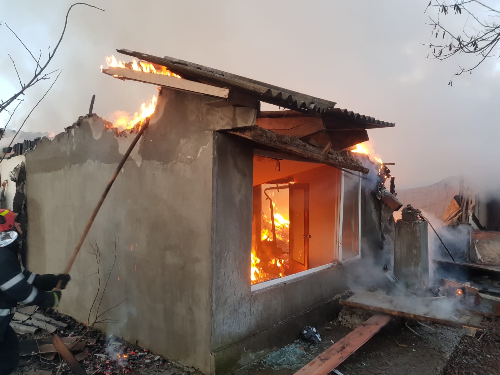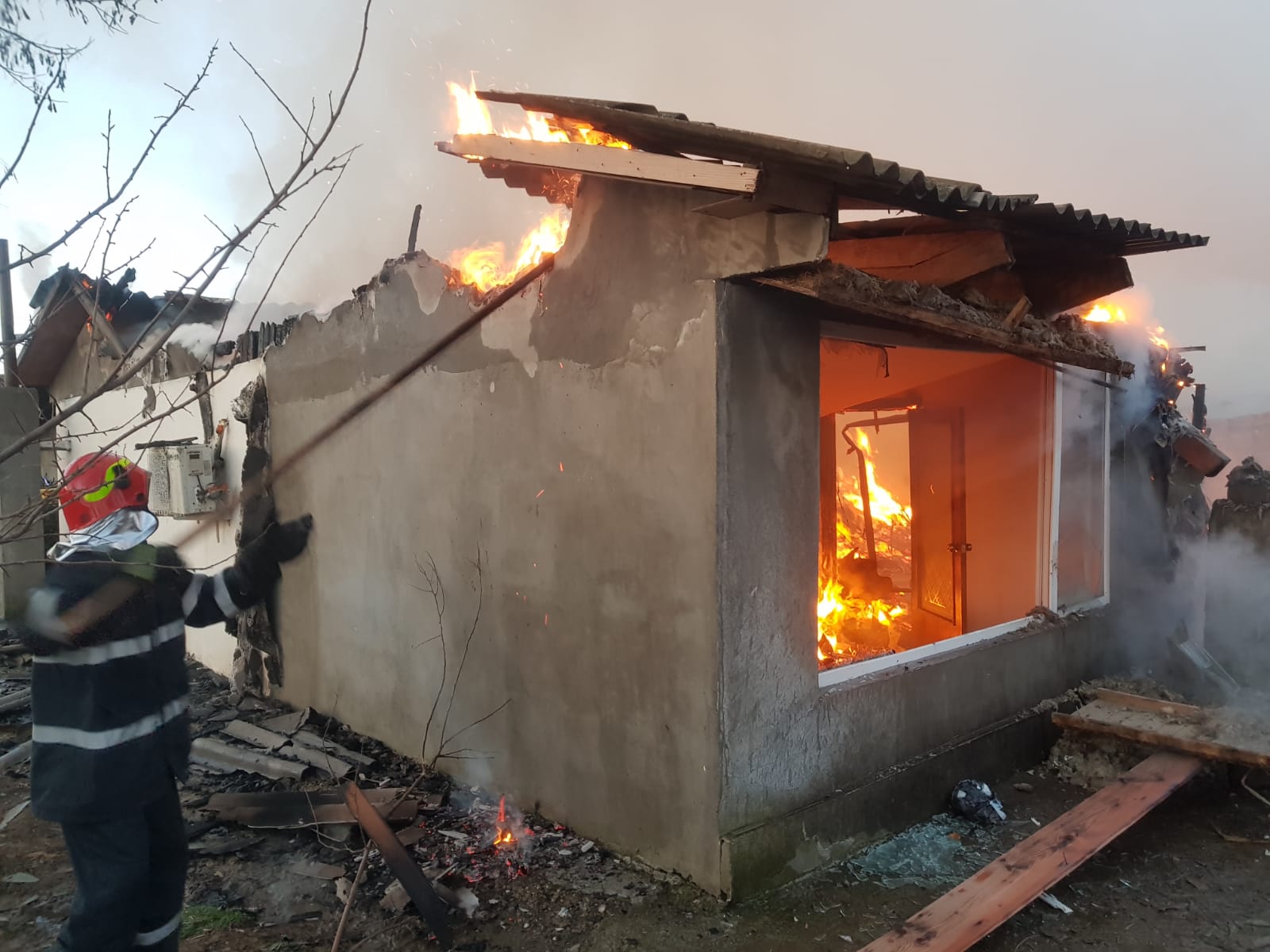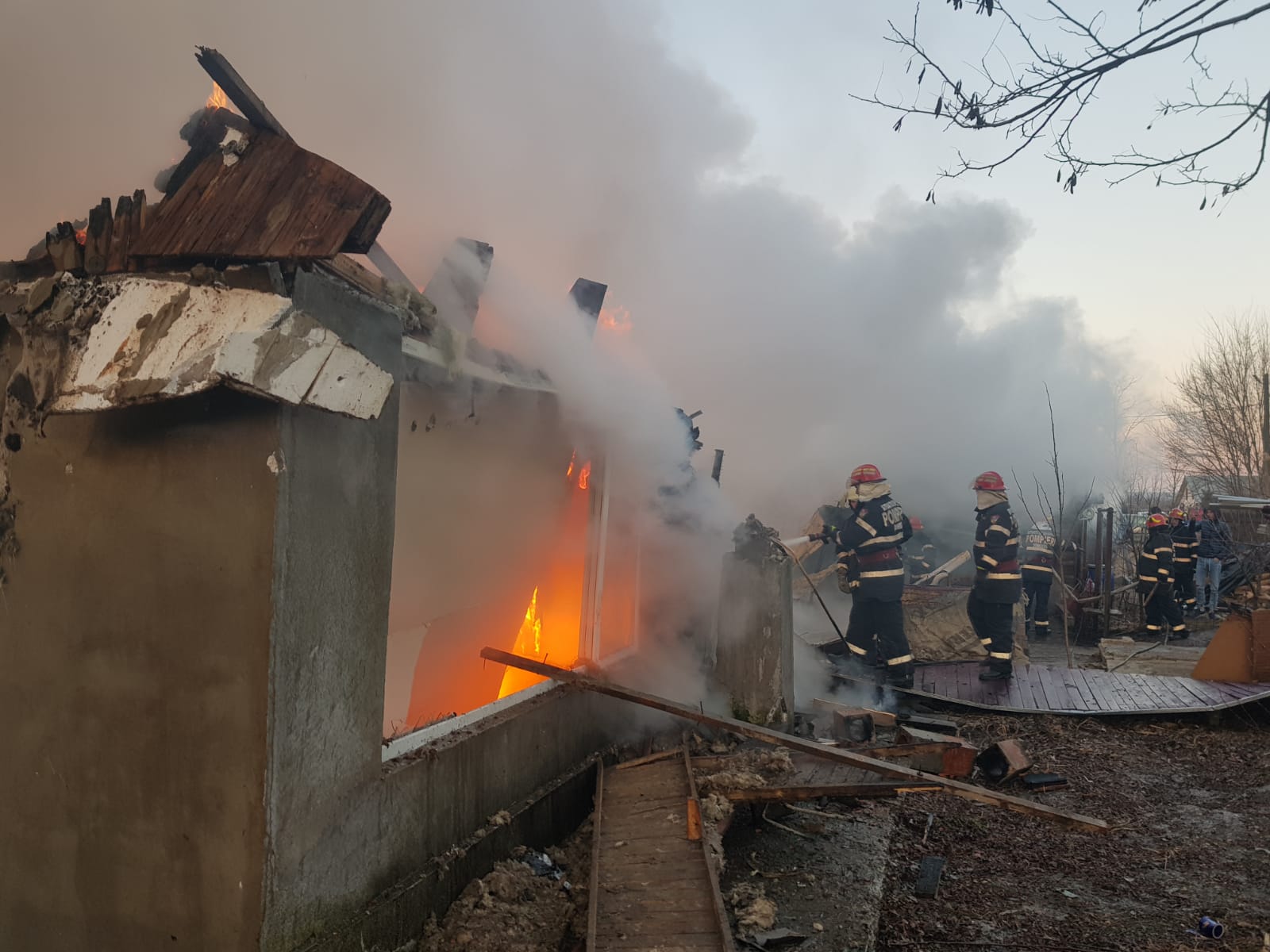 La sosirea echipajelor, incendiul se manifesta generalizat pe o suprafață de aproximativ 400 mp.