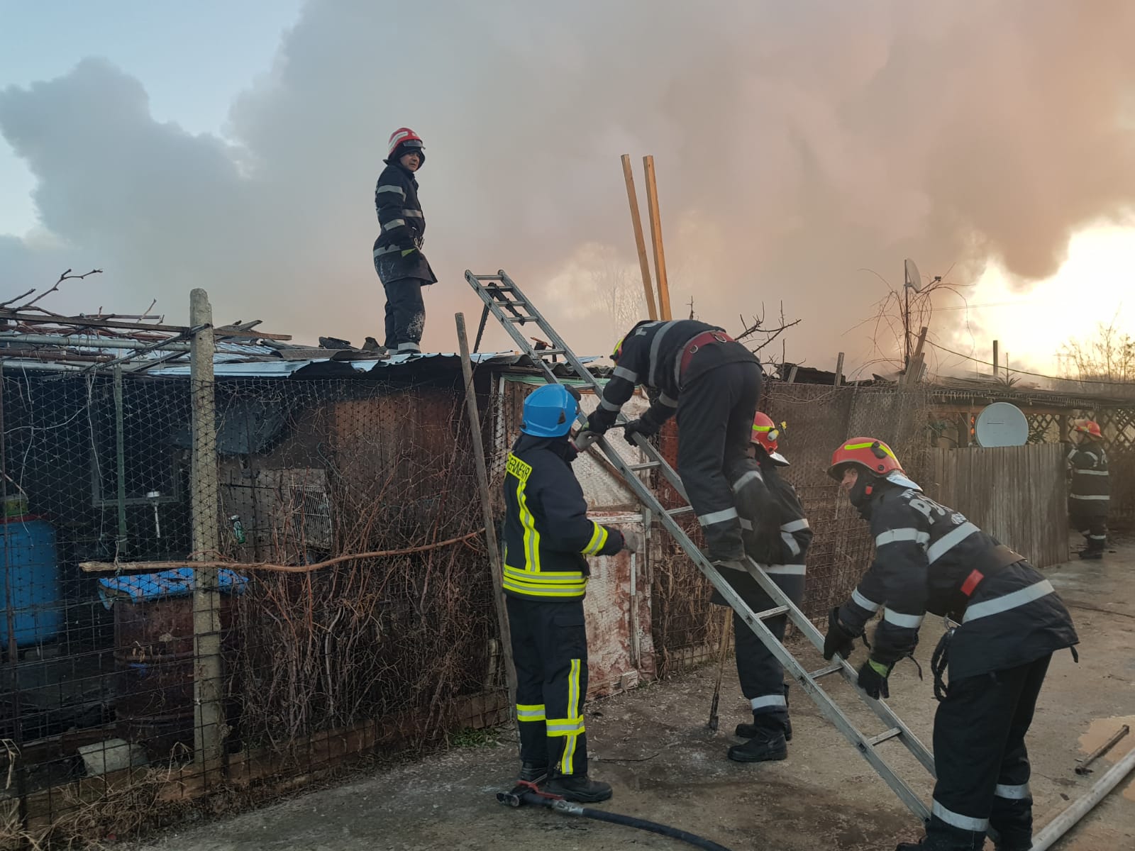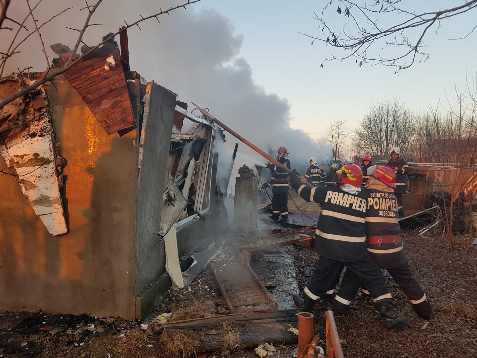 Județul CONSTANȚA/FOTO: Incendiu la un ansamblu de locuinţe. Case distruse de foc
