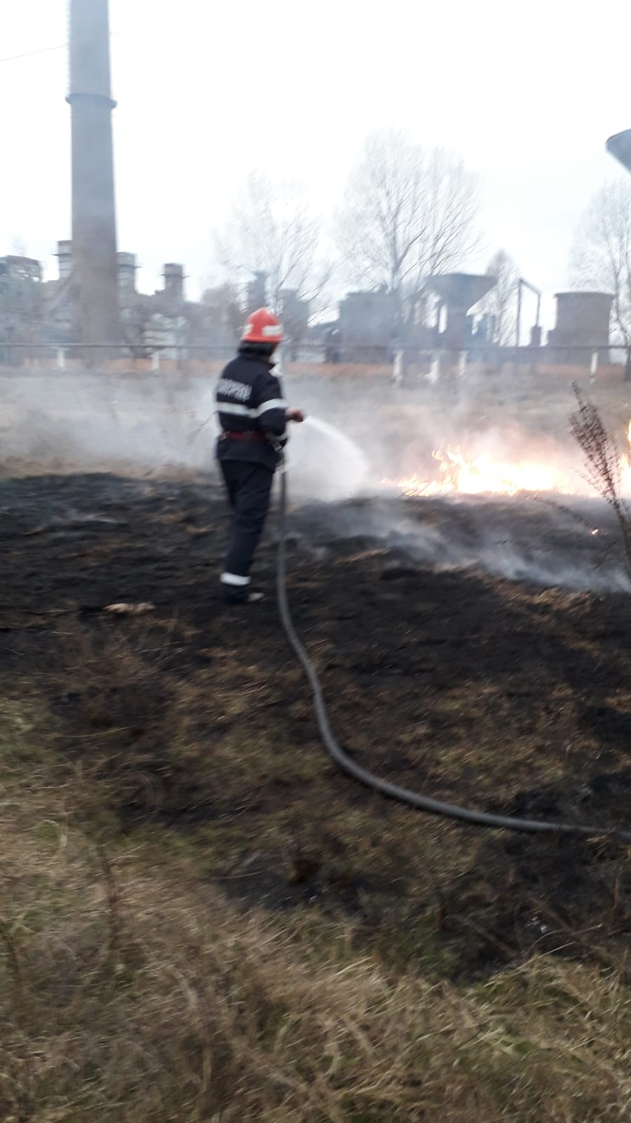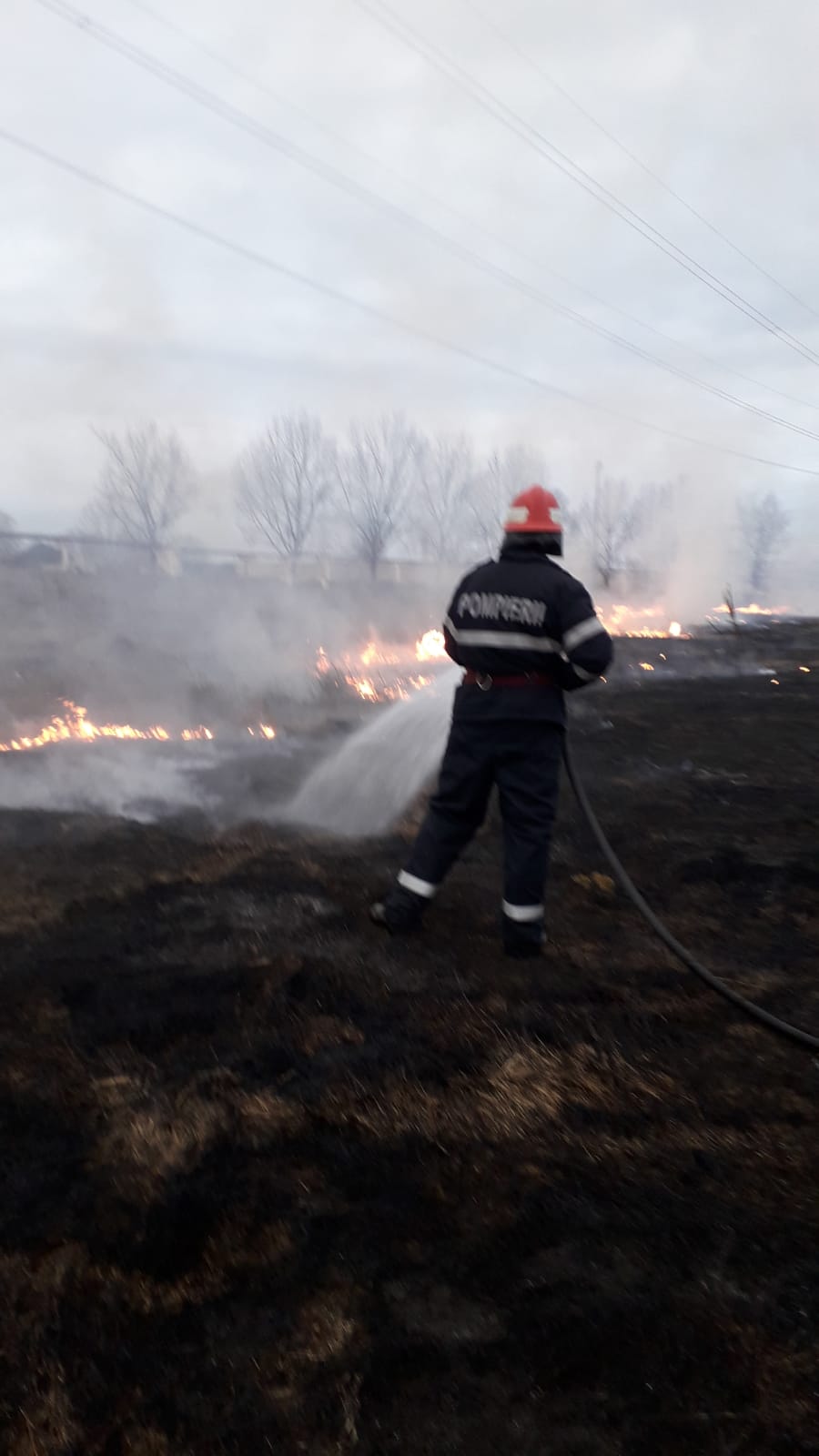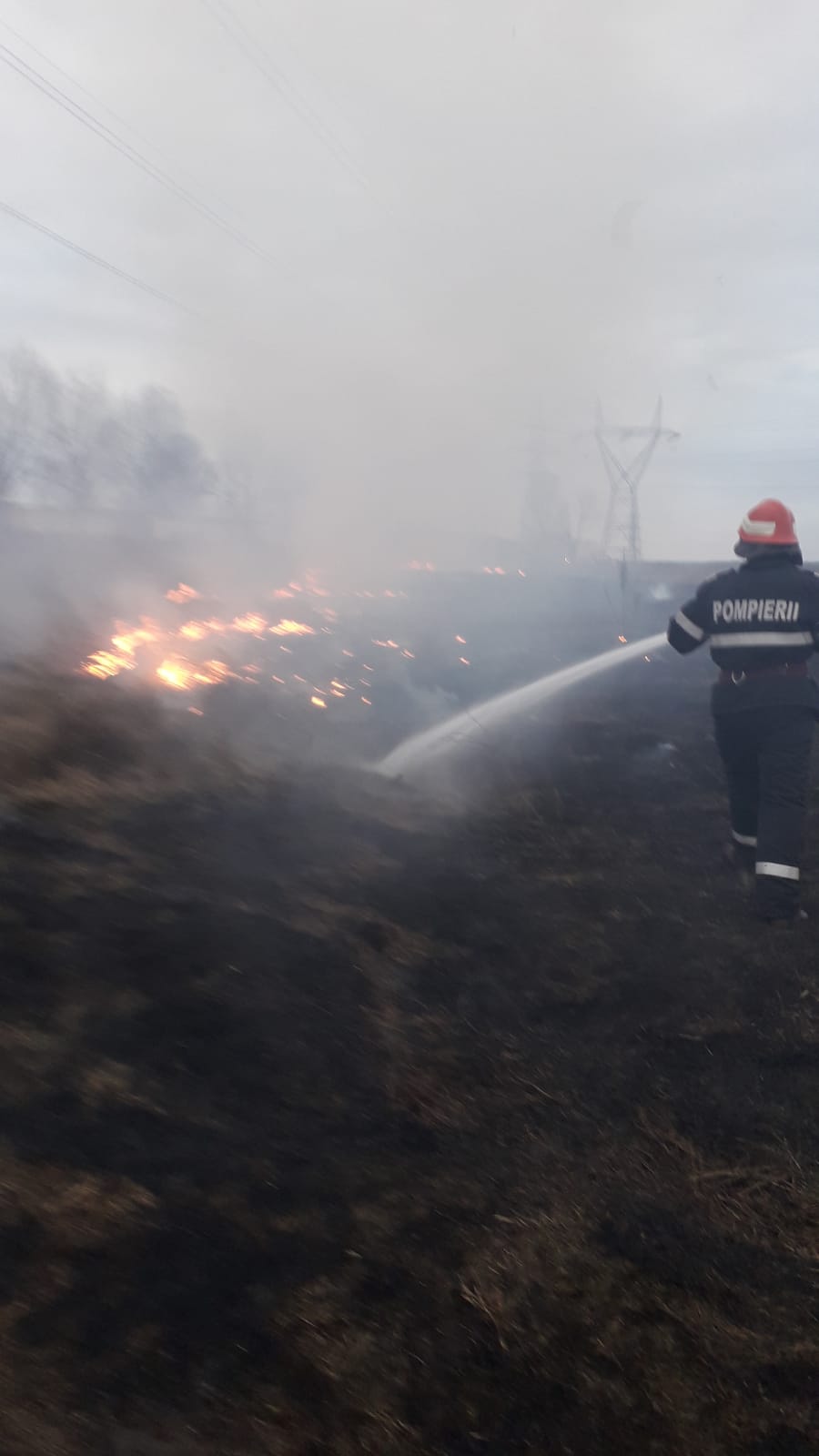 Pompierii au intervenit pentru stingerea unui incendiu de vegetație uscată