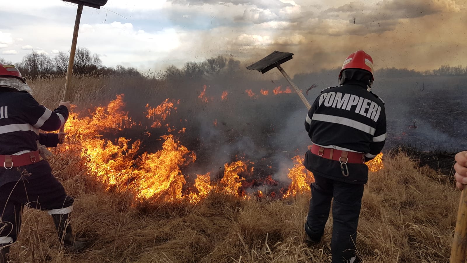 La fața locului incendiul se manifestă pe o suprafață de aproximativ 4 hectare, informează ISU Delta Tulcea.