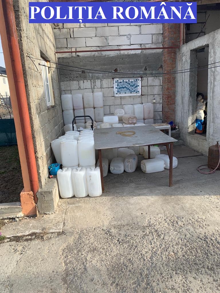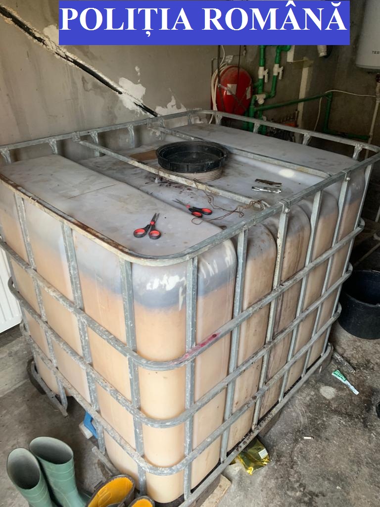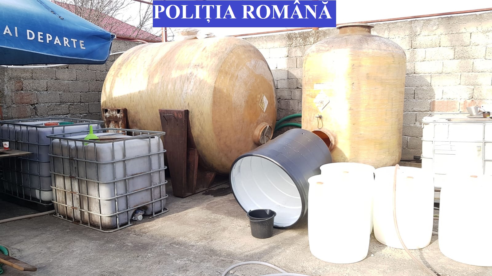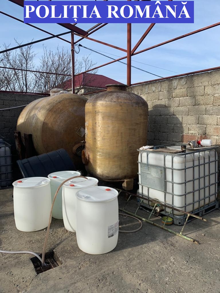 De asemenea, polițiștii au descoperit, la domiciliul unui bărbat, de 50 de ani, din județul Vrancea, aproximativ 12.000 de litri de băuturi alcoolice, susceptibile a fi contrafăcute, bani, două autovehicule de transport marfă, precum și mai multe recipiente goale, folosite la activitatea infracțională.