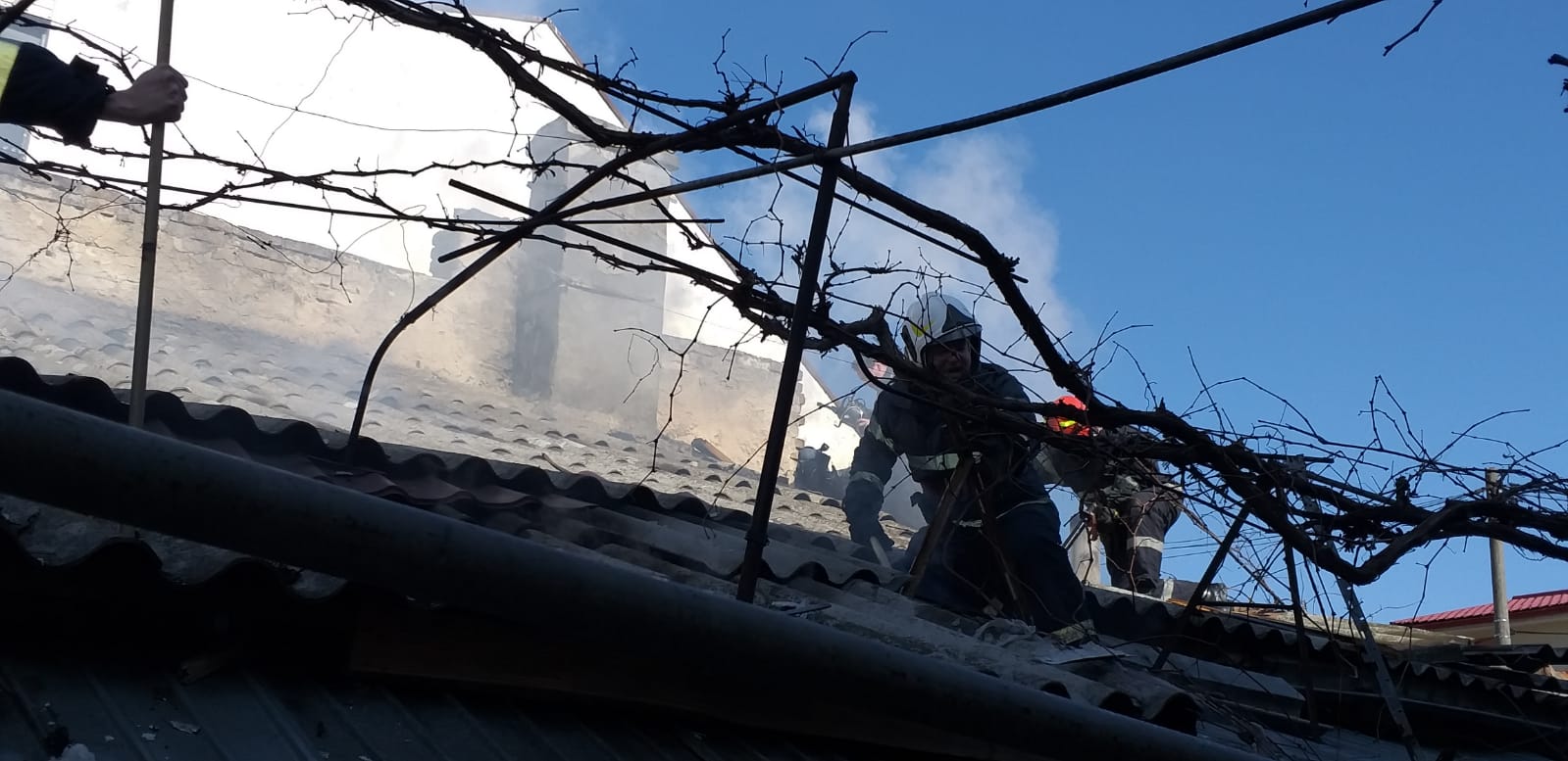 CONSTANȚA/FOTO: Casă cuprinsă de flăcări. O bătrână a fost rănită