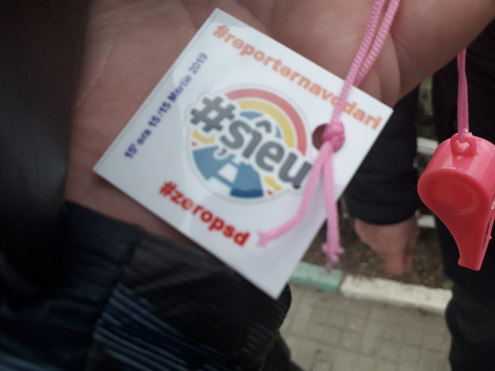 Acțiunea s-a desfășurat pe trotuarul de langa Parcul Central, iar participanții au primit un fluier personalizat al evenimentului.