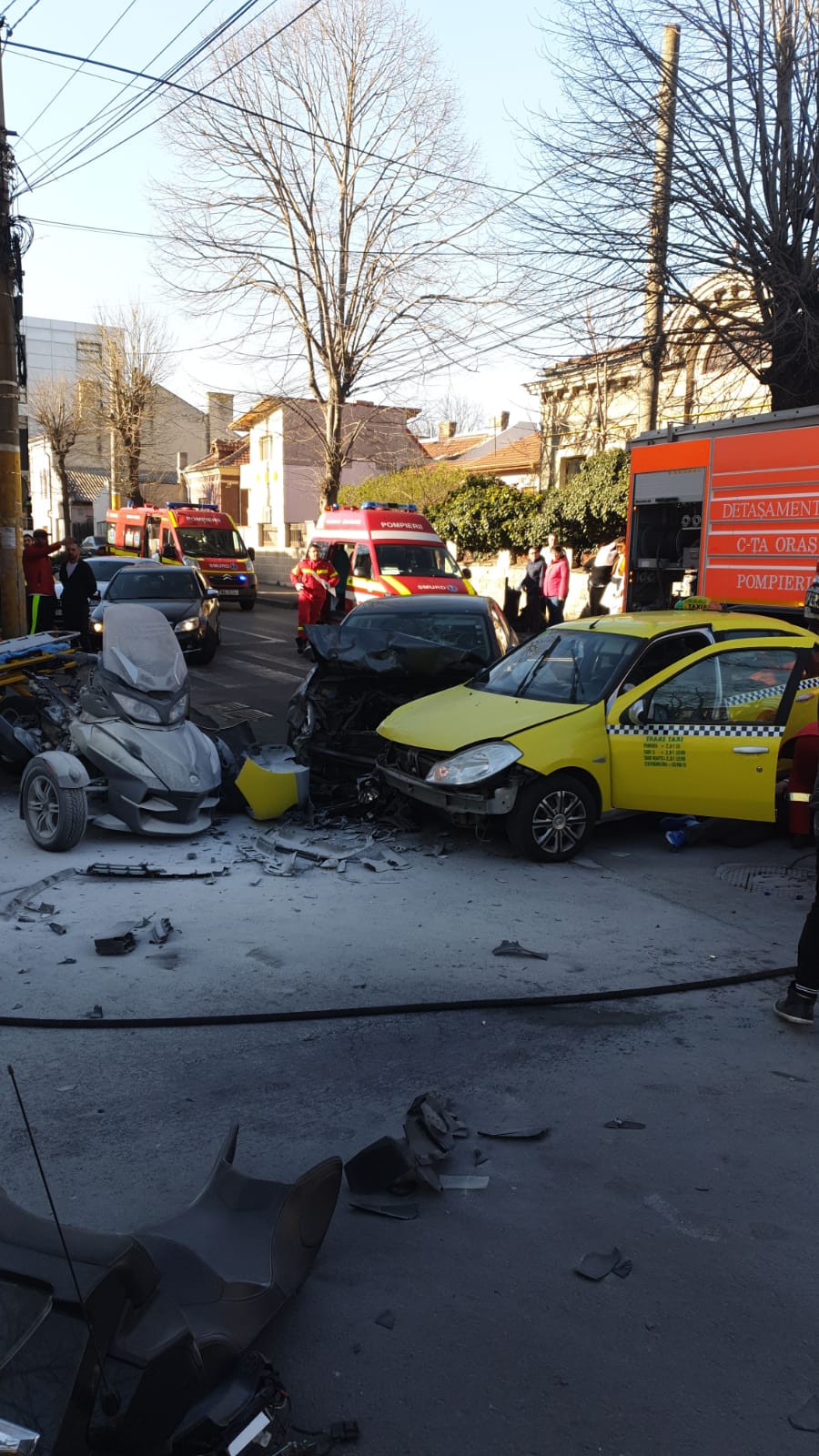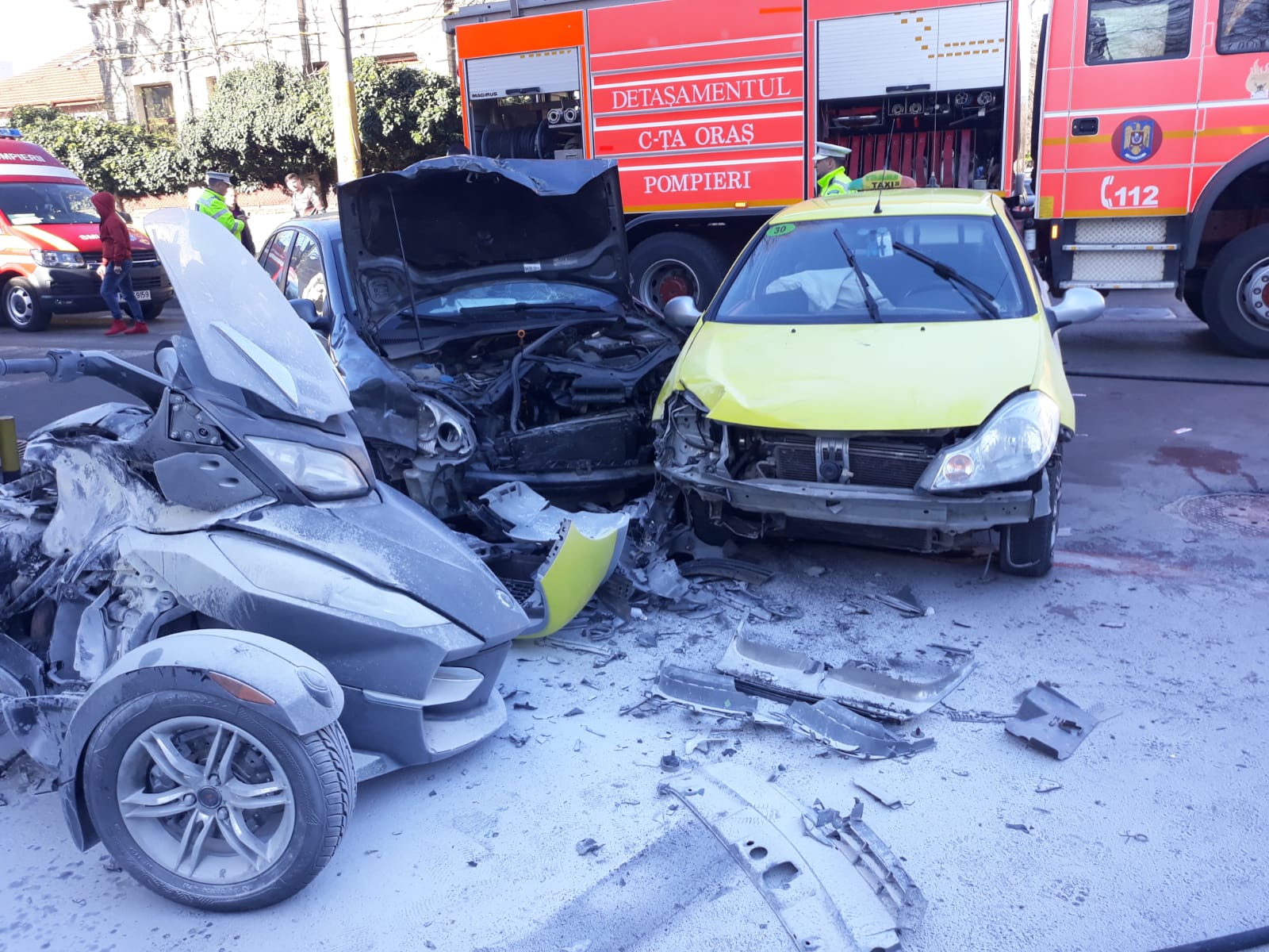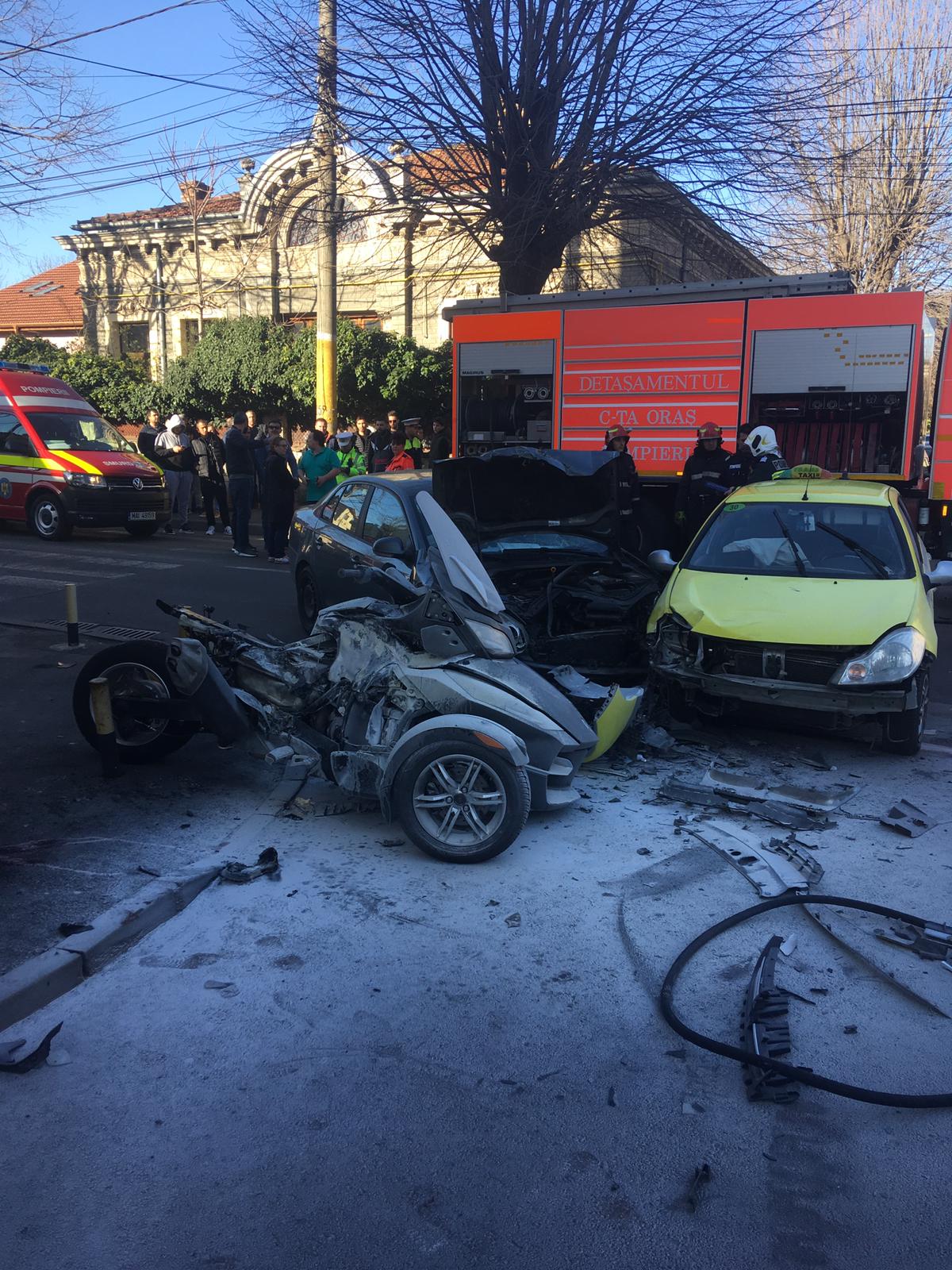 Un accident rutier în care au fost implicate două autoturisme și o motocicletă a avut loc în urmă cu scurt timp în Constanța, la intersecția străzilor Constantin Brătescu cu Mihai Viteazu.