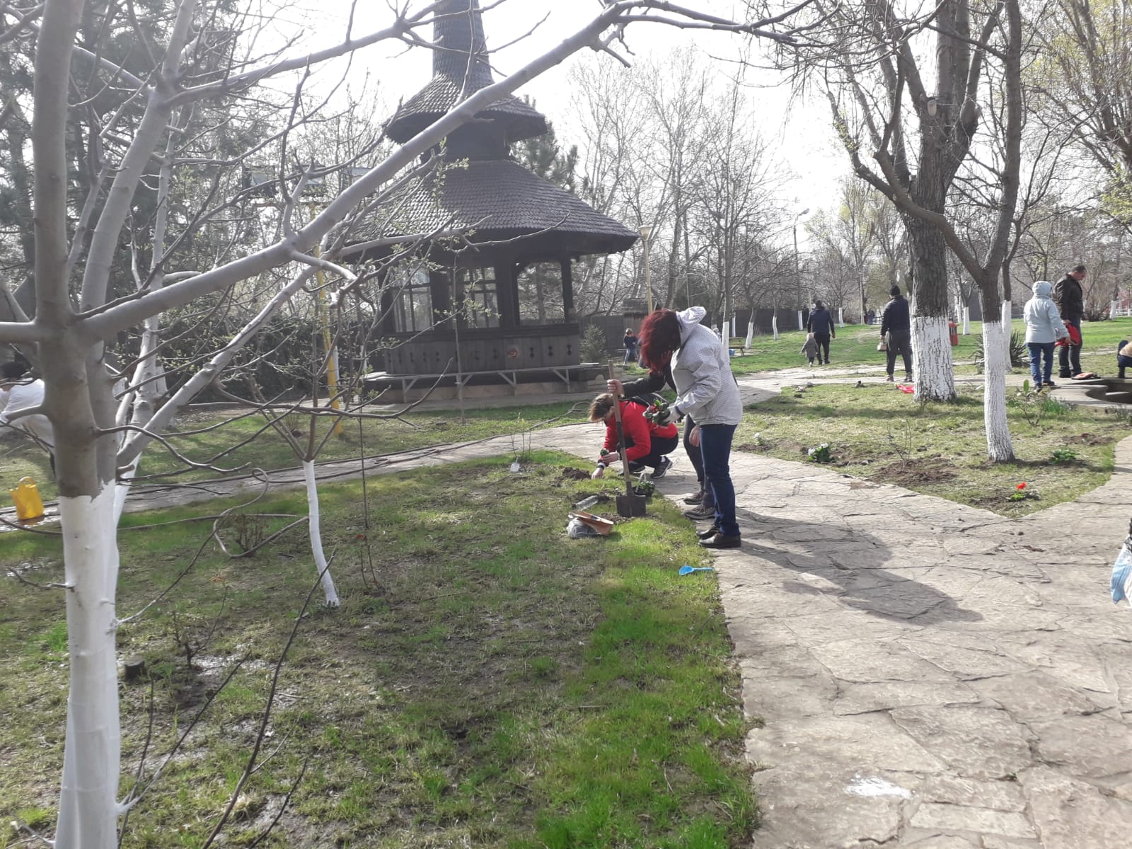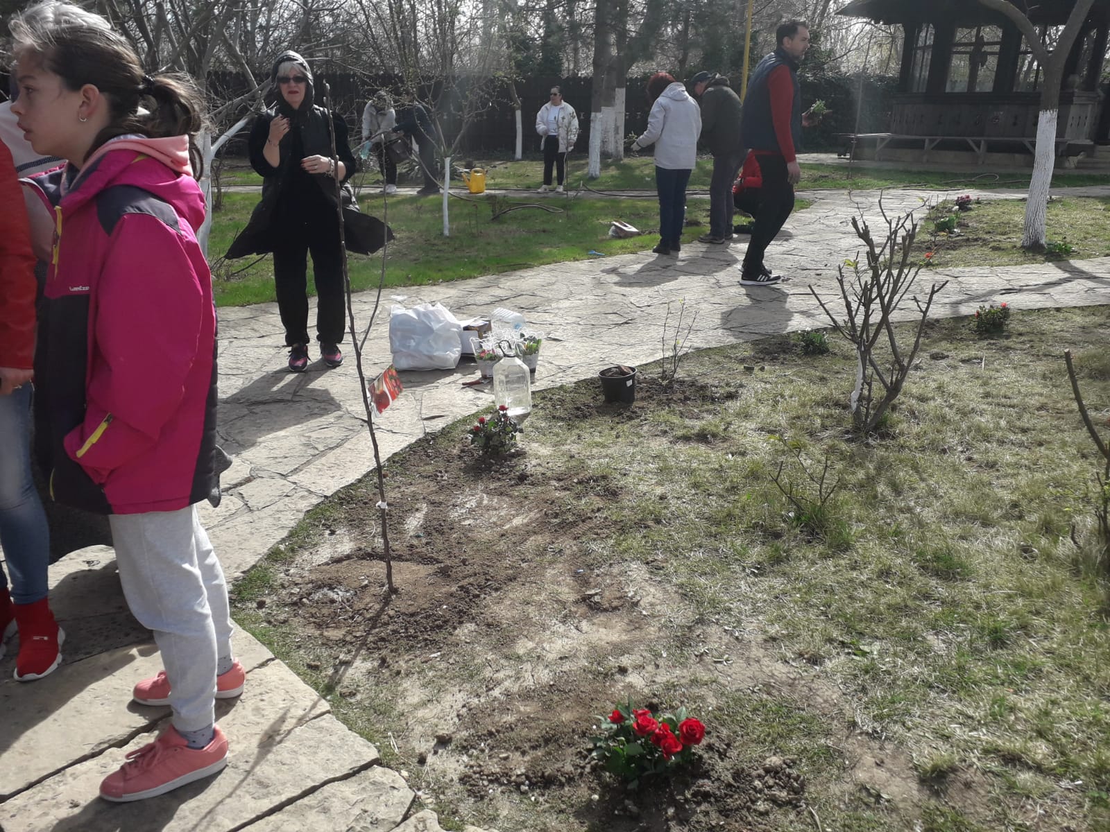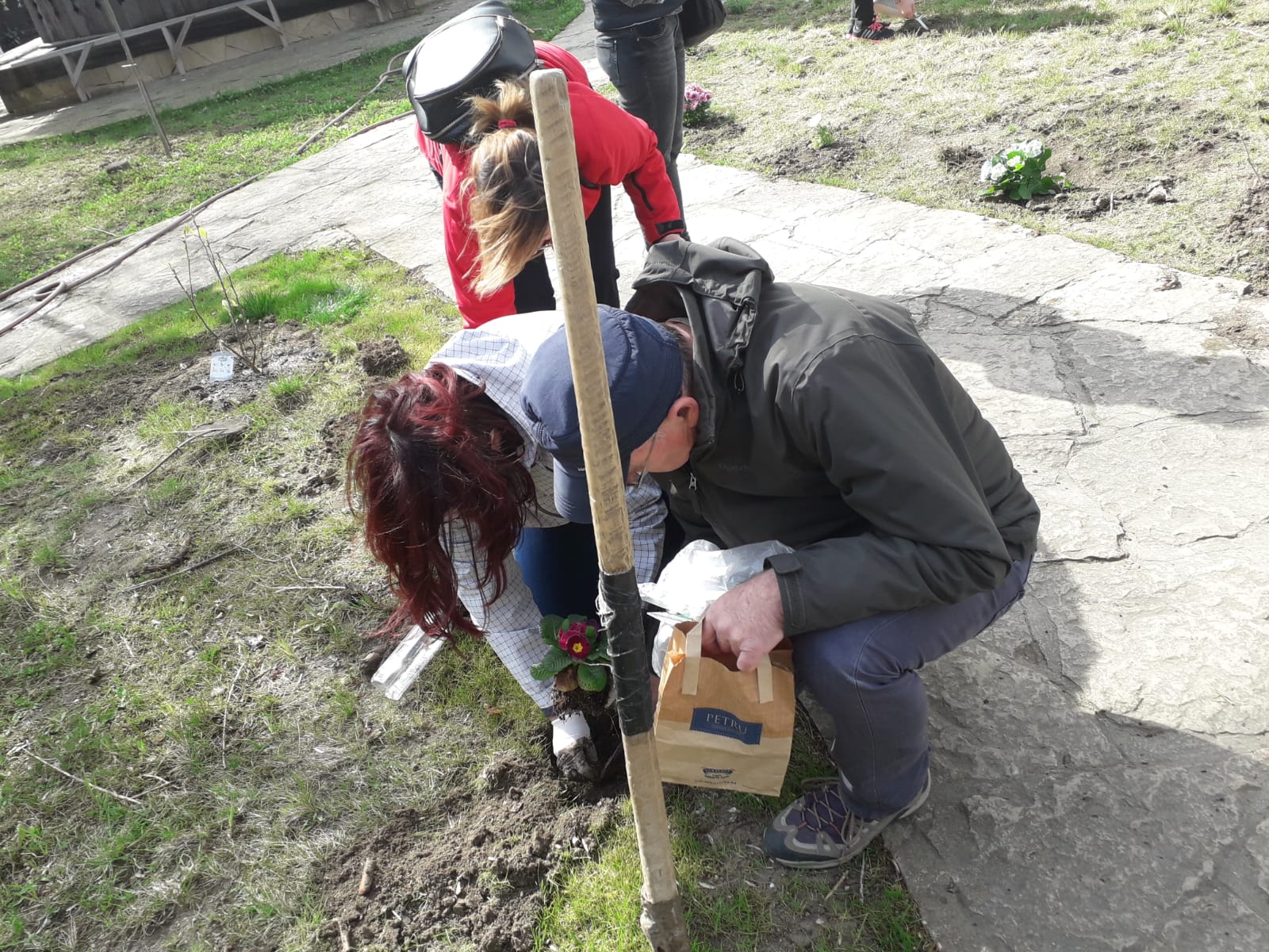 Cei veniţi astăzi să planteze flori au fost îndemnaţi să vină şi să le îngrijească pe tot parcursul anului.