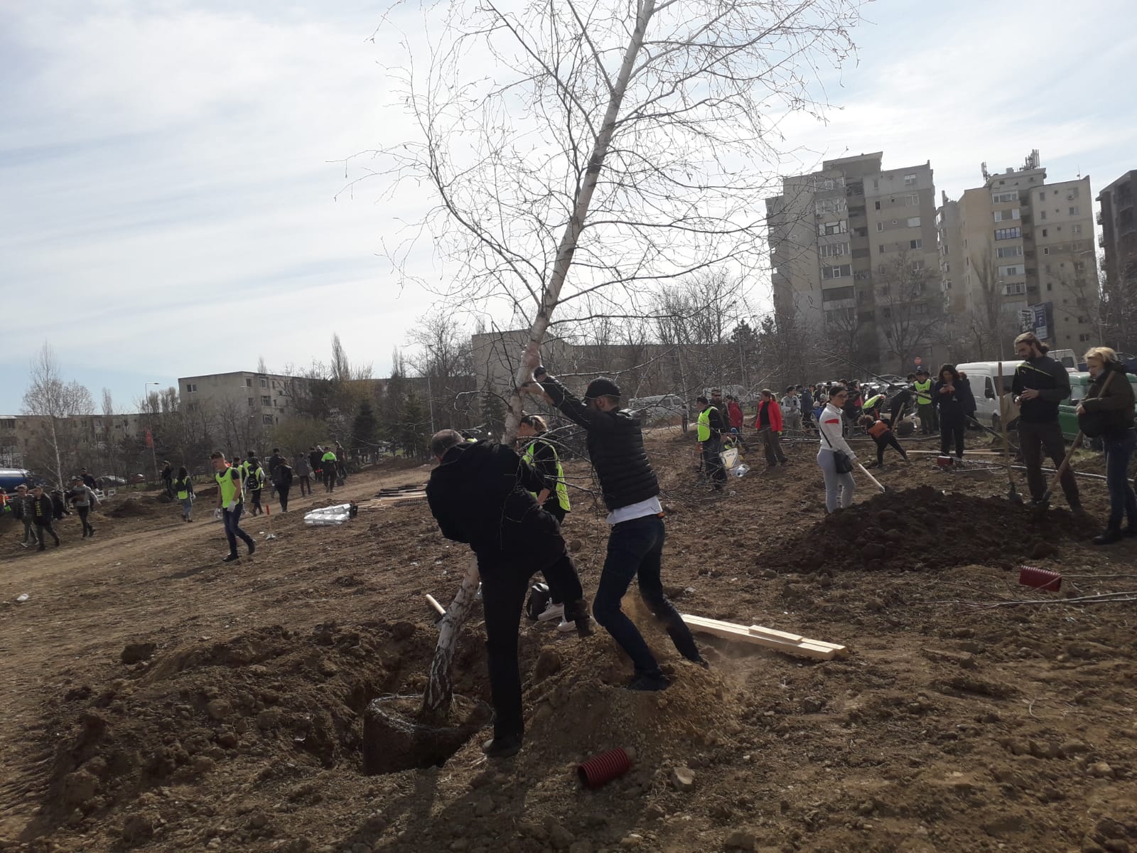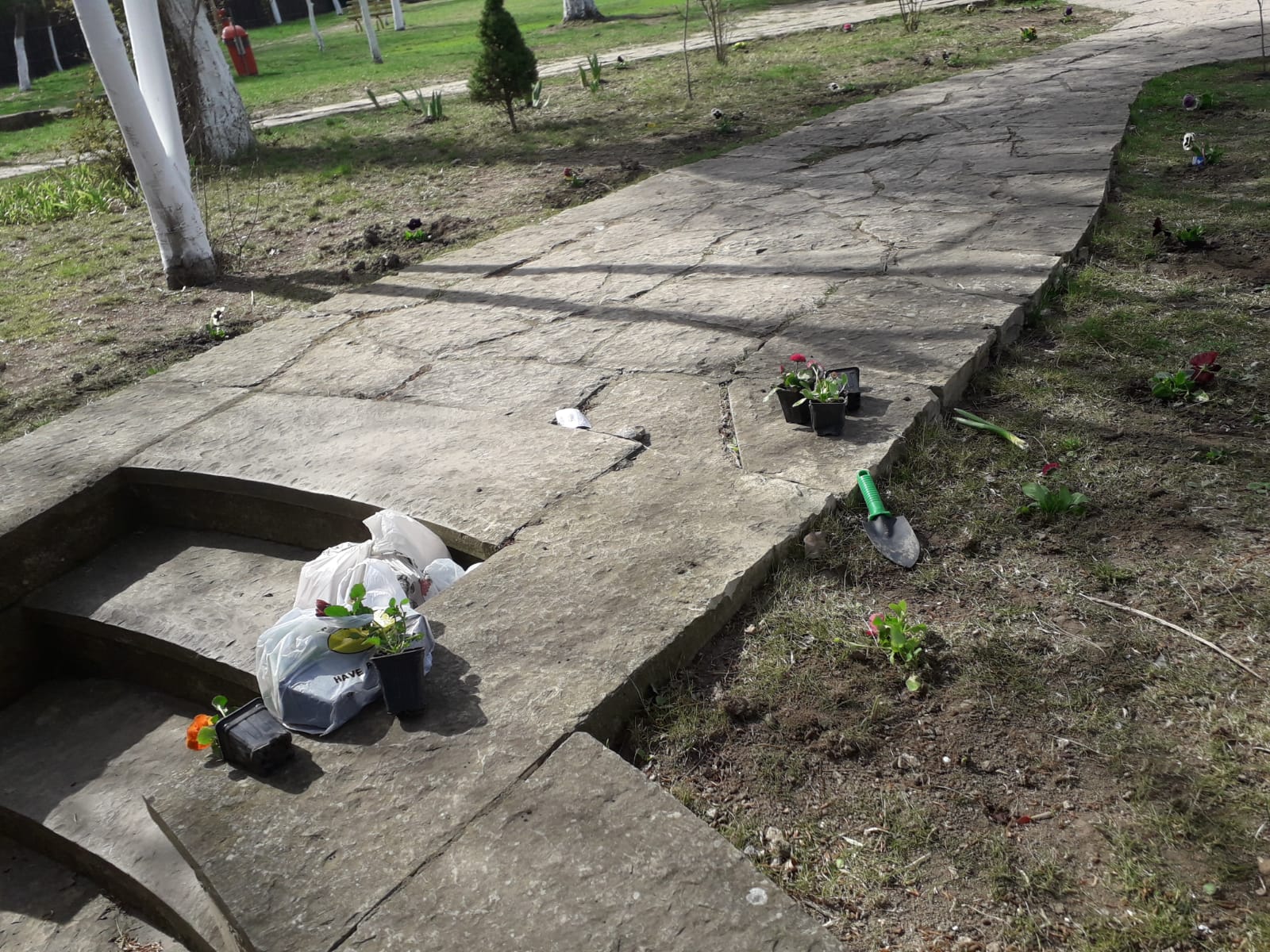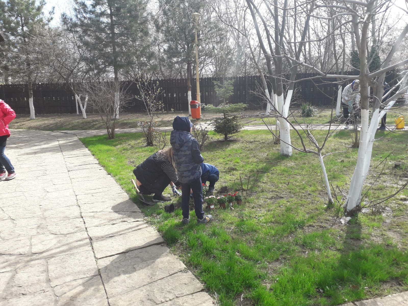 Cei veniţi astăzi să planteze flori au fost îndemnaţi să vină şi să le îngrijească pe tot parcursul anului.