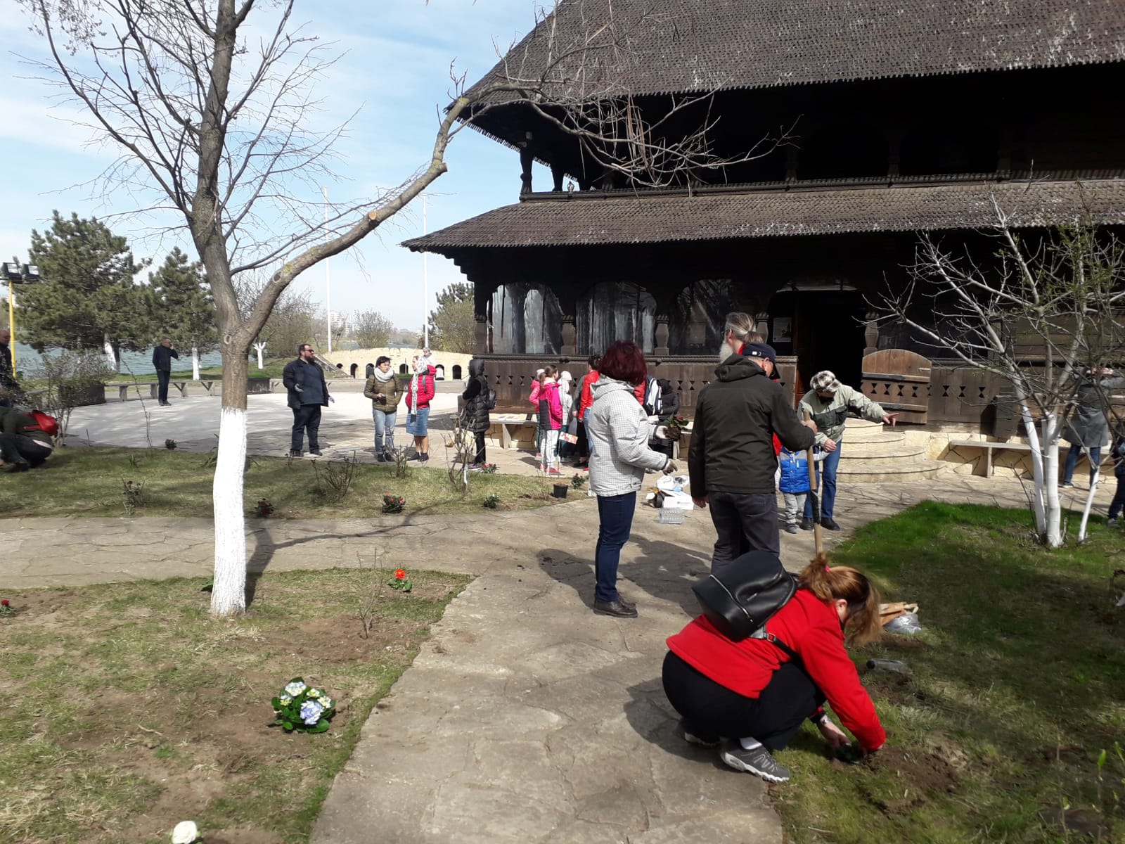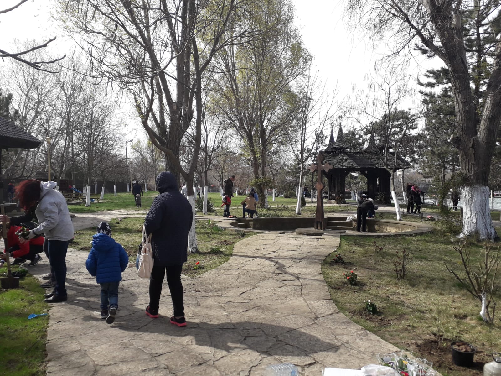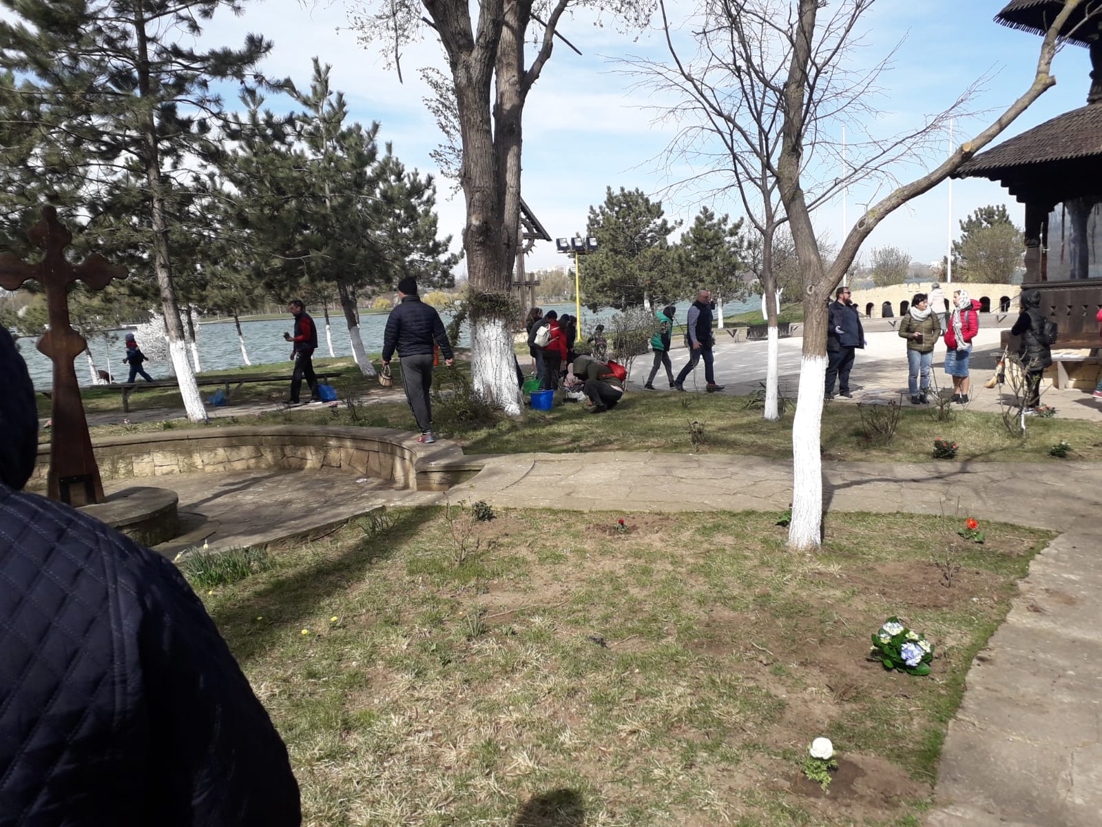 Sub genericul „Cu o floare se face primăvară”, parohul bisericii, părintele Claudiu Banu, a strâns zeci de voluntari care au venit cu pregătiţi şi au plantat flori în curtea bisericii situate pe malul lacului Tăbăcărie