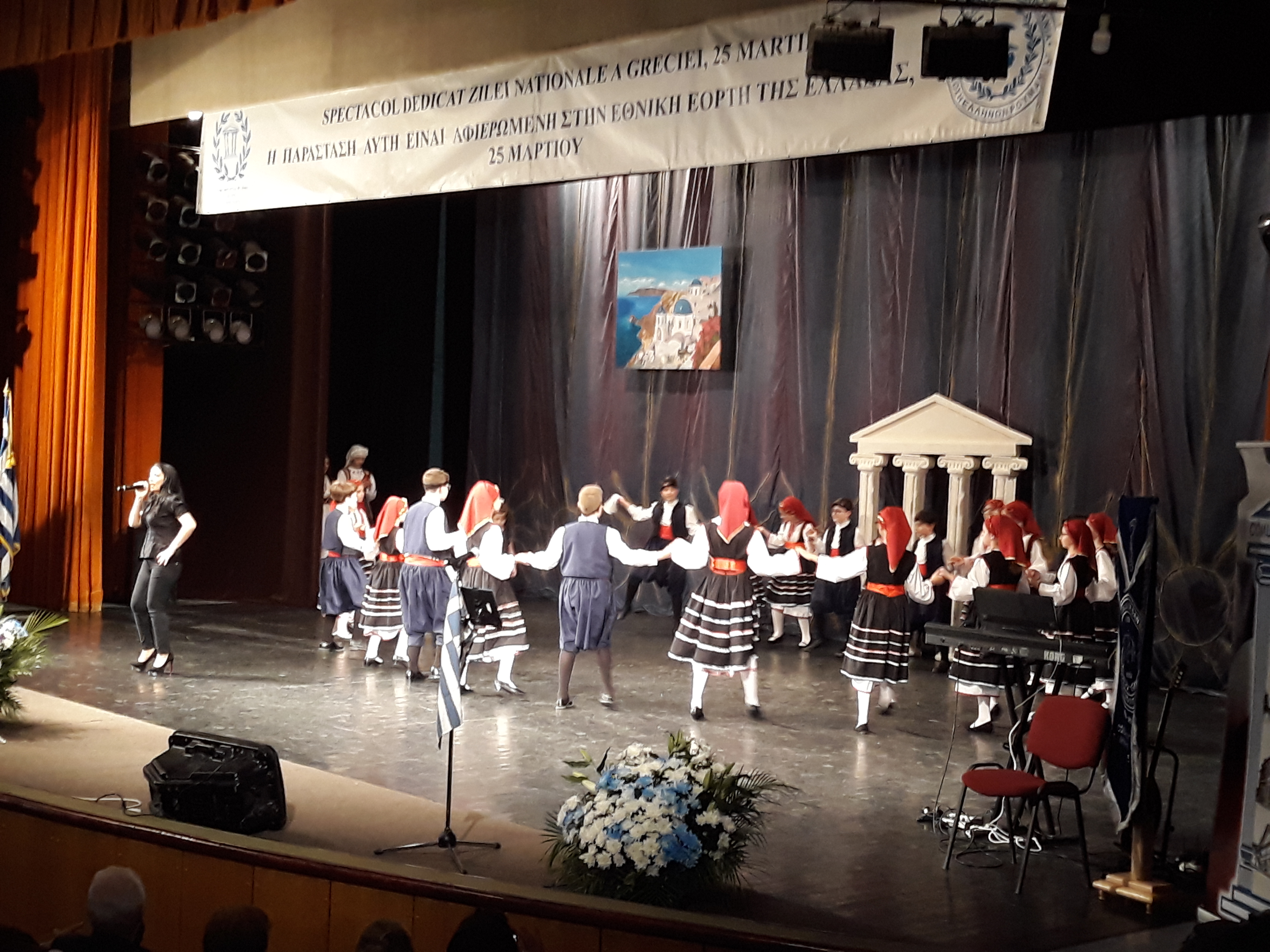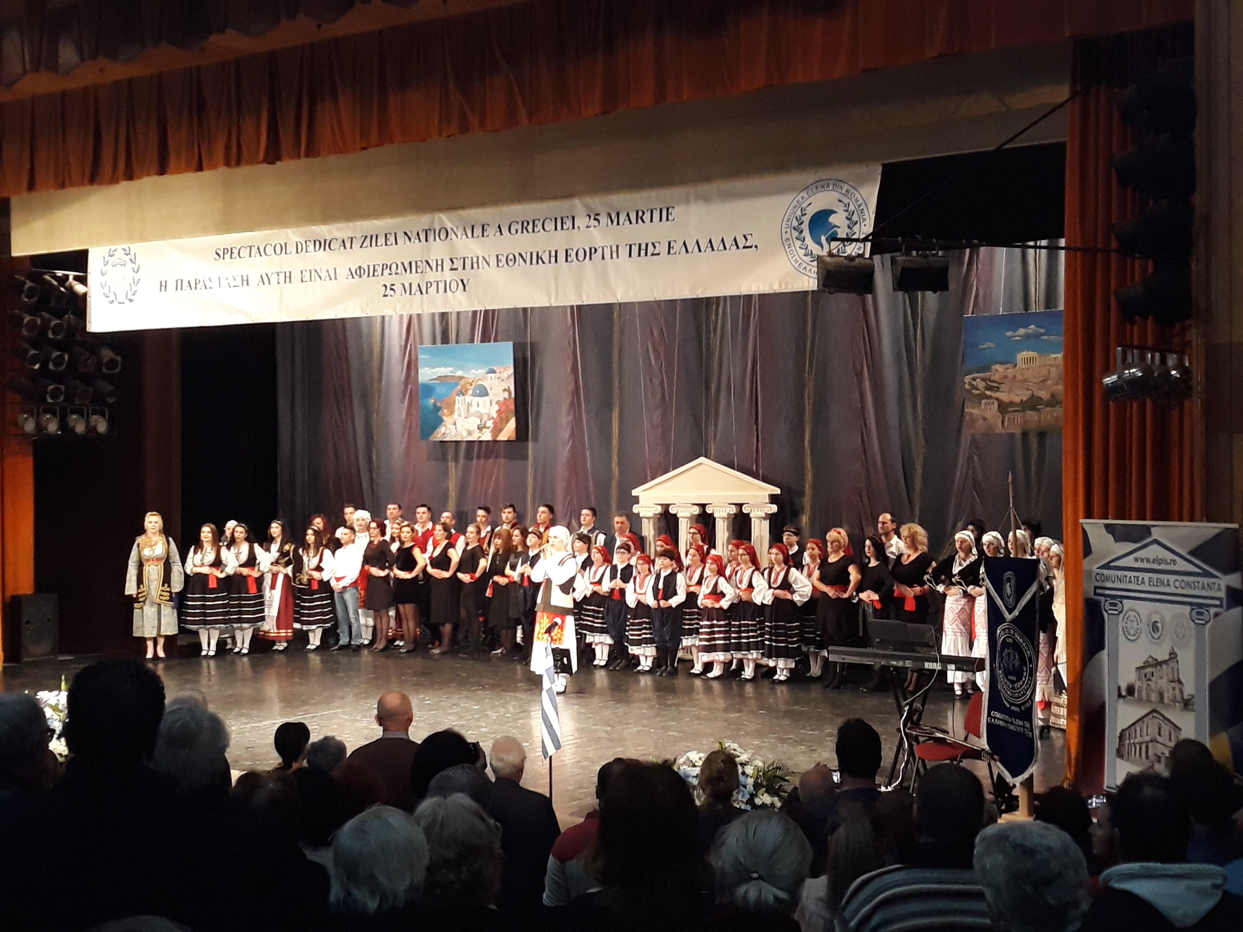Sala mare a Casei de Cultură a Sindicatelor a fost arhiplină la spectacolul organizat de Comunitatea elenă Elpis Constanța, dedicat Zilei Greciei, fiind prezente autorități locale: primarul municipiului, Decebal Făgădău, consilieri locali și județeni și reprezentanți ai minorităților din Constanța.