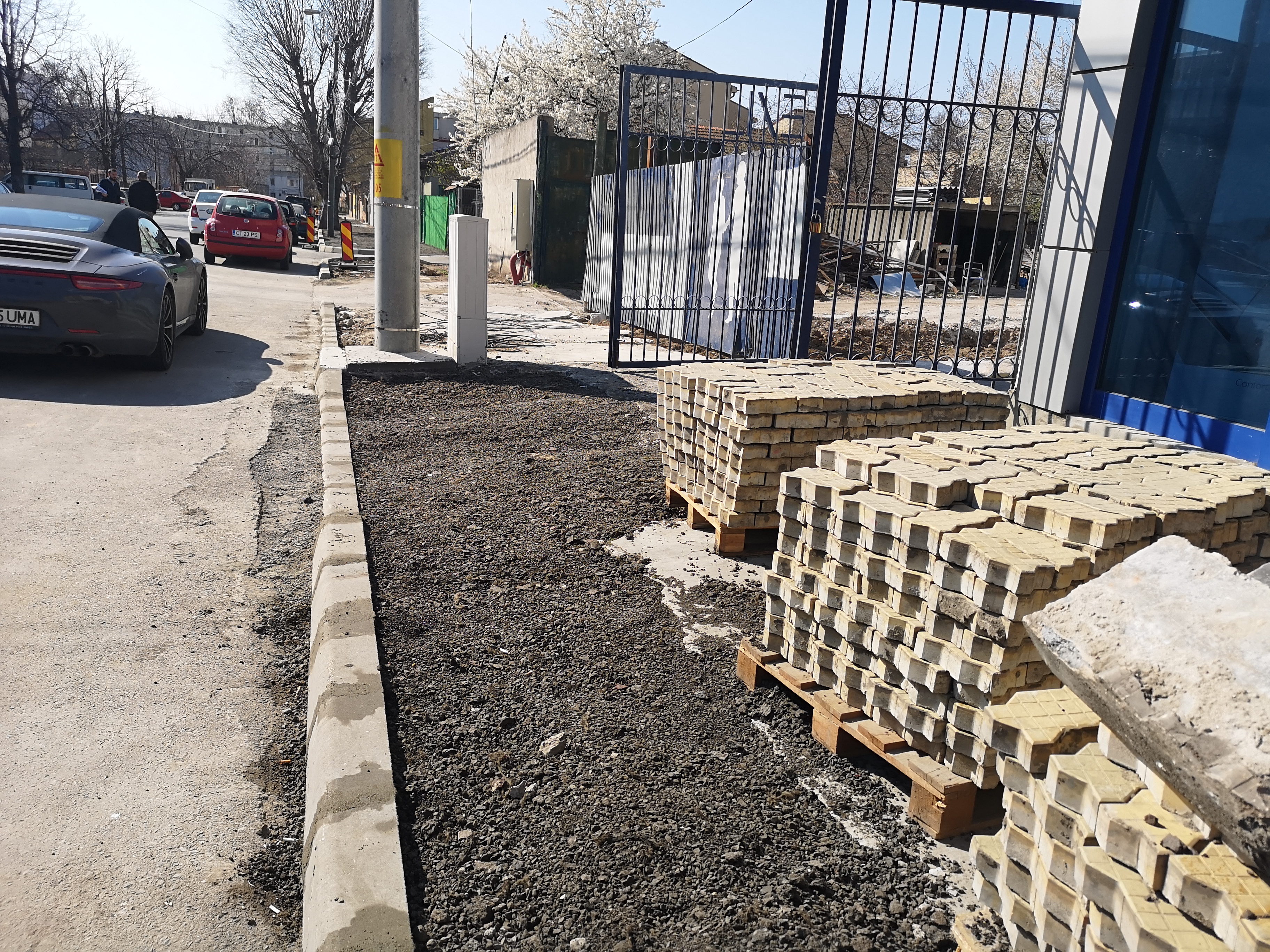 Zona destinată circulației pietonilor a beneficiat de borduri noi, a fost pregătită infrastructura şi a fost turnat covorul asfaltic pe o porţiune din zonă.