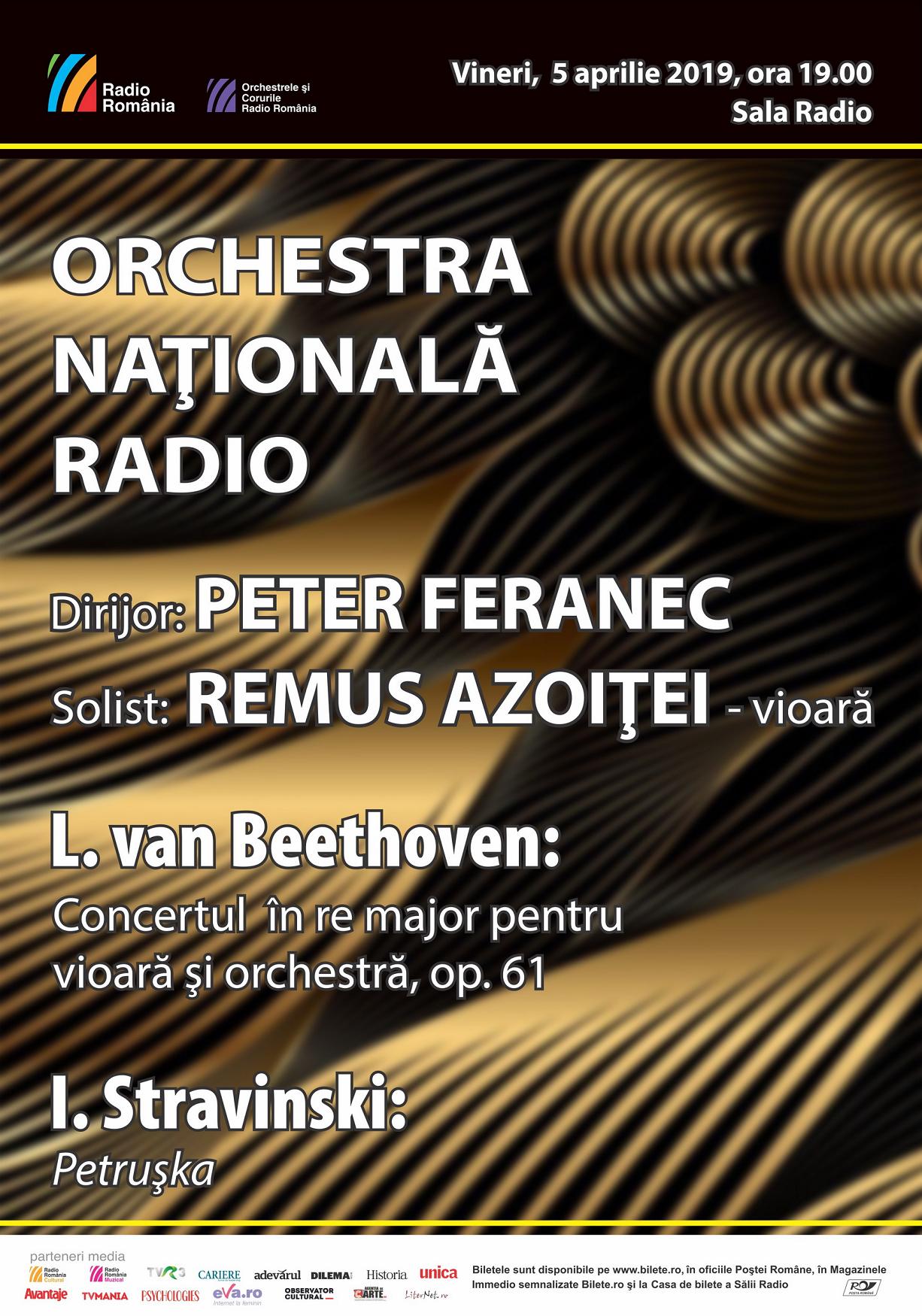 Violonistul de talie internaţională Remus Azoiţei – un muzician al superlativelor, este invitat pe scena Sălii Radio, în concertul susţinut vineri, 5 aprilie (ora 19:00), de Orchestra Naţională Radio. Remus Azoiţei cântă pe o vioară de patrimoniu universal Gagliano, creată în 1740, şi a înregistrat în premieră mondială integrala lucrărilor pentru vioară şi pian de Enescu (alături de pianistul Eduard Stan) pentru casa de discuri Hanssler (Germania). În 2001 a fost numit profesor de vioară al Academiei Regale de Muzică – Londra, la acel moment fiind cel mai tânăr profesor de vioară din întreaga istorie de 200 ani a instituţiei. În 2005, a interpretat Dublul concert de Bach alături de violonistul Nigel Kennedy, în cadrul Festivalului Enescu, concert preluat de 19 posturi de radio şi televiziune din Europa.