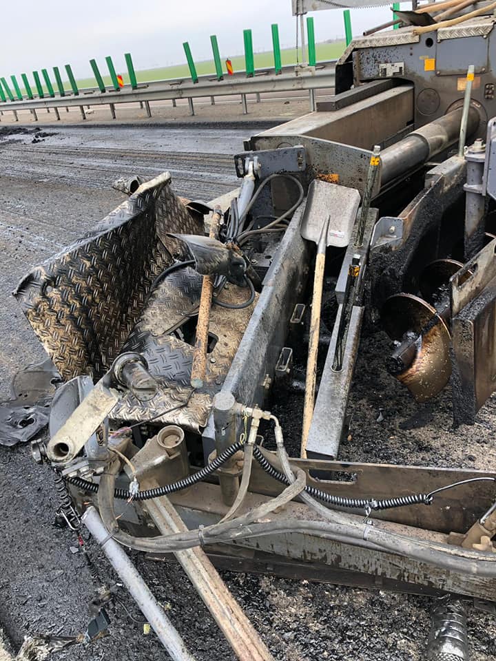 Şoferul a fost scos din autoturism de cei de la pază și a fugit, după care autovehiculul a luat foc, iar apoi incendiul s-a extins la freză şi la cilindrul compactor.