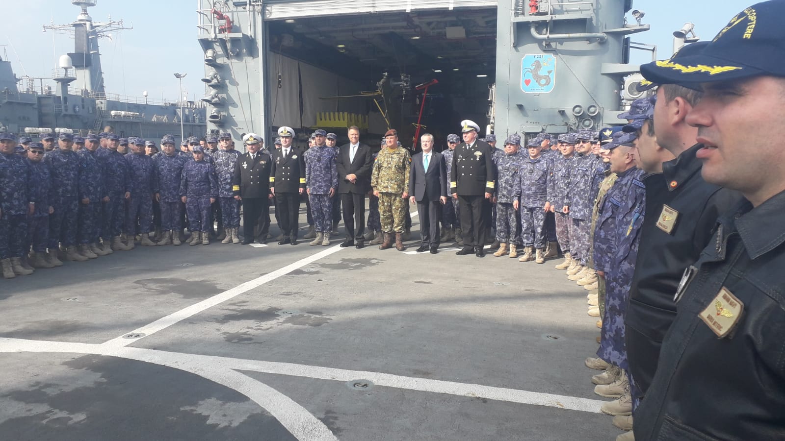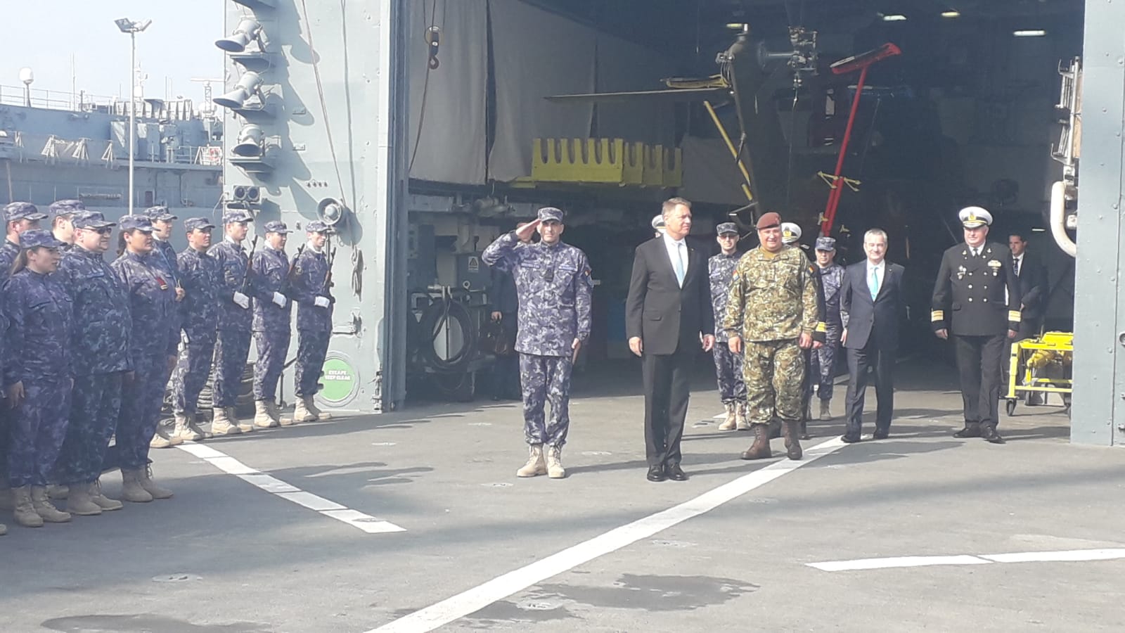 Preşedintele României, Klaus Iohannis, vizitează la această oră fregatele care au participat la exerciţiul NATO în Marea Neagră „Sea Shield 2019”.