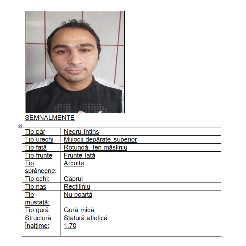 Pentru orice informaţie cu privire la deţinutul din fotograrfie, apelaţi numărul unic de urgenţe 112 sau Penitenciarul Tulcea la numărul de telefon : 0240 531551.
