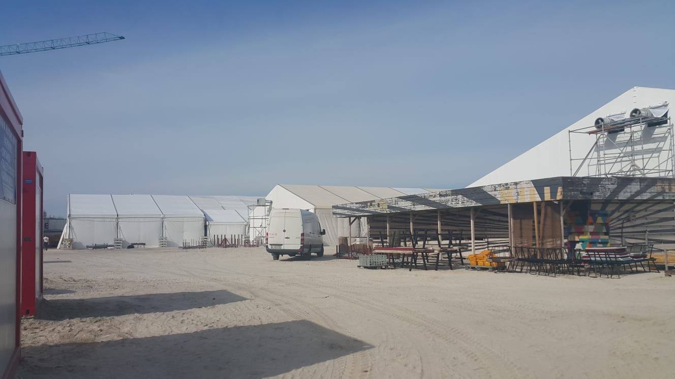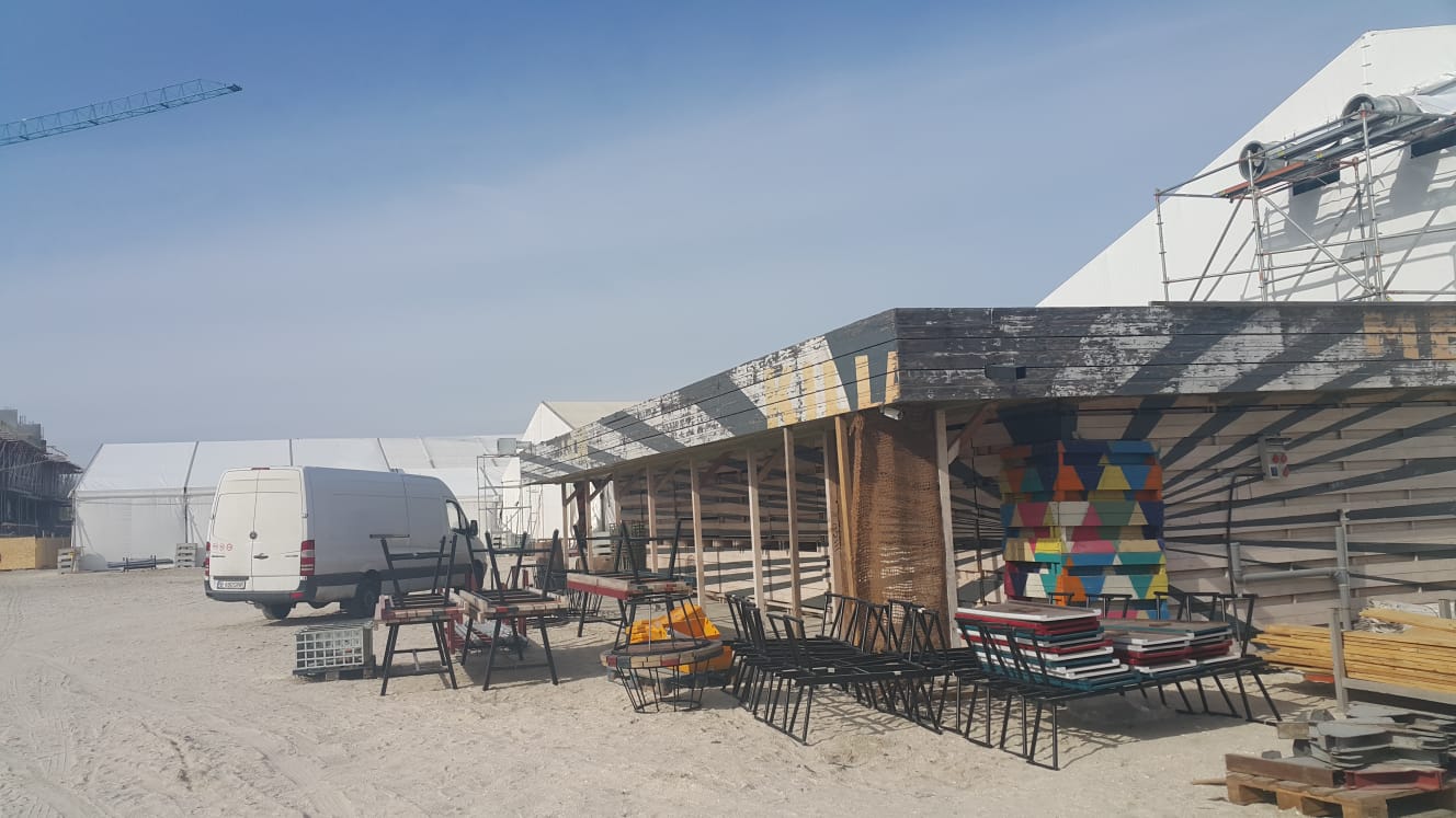 Totuși, în locurile unde chiar se va întâmpla ceva, pregătirile erau mai animate. În zona de nord a stațiunii, unde se va deschide joi seară festivalul Sunwaves, scenele erau aproape gata montate și se lucra intens.