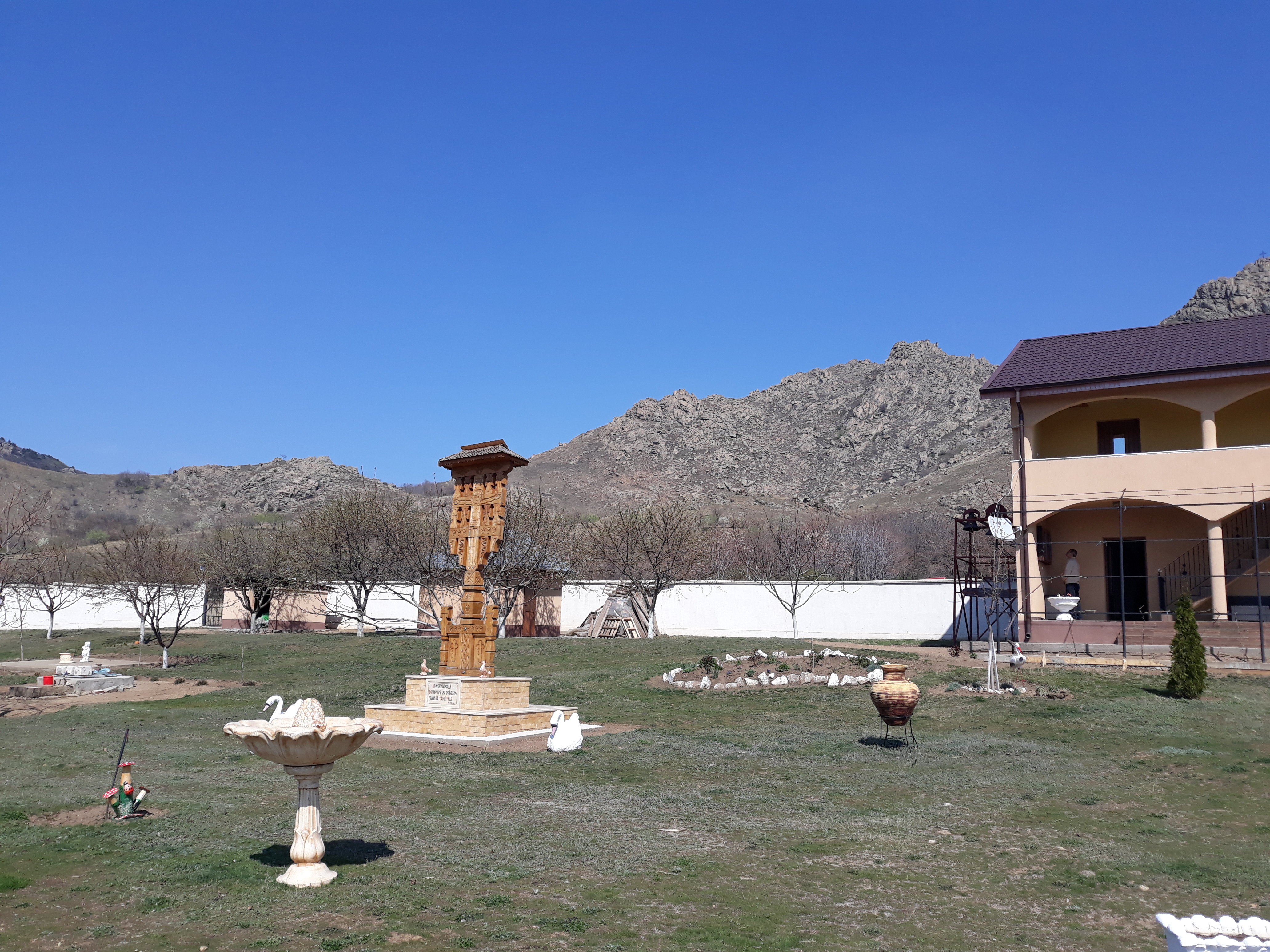 „În anul 2004, s-a pus piatra de temelie a Mânăstirii Izvorul Tămăduirii, care adăpostește câteva icoane deosebite, racla cu mucenici uciși la Betleem, racla de arginți cu mandibula Sf.Cuv. Siluan Athonitul, o parte din veșmântul Sf.Cuv.Ioan Rusul și multe alte neprețuite daruri sfinte”, povestește starețul Ieronomim. Picturile din interior sunt realizate în tehnica mozaicului, asemănătoare celor de Mânăstirea Cocoșu.