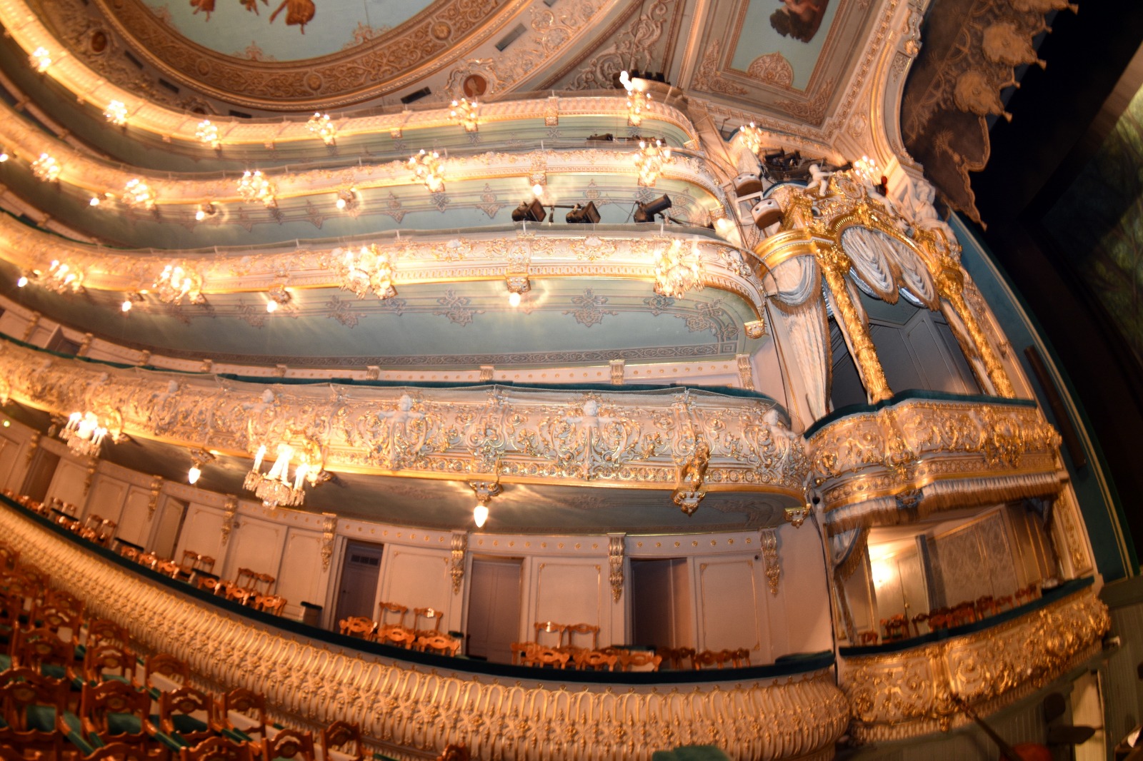 În ultima zi la Sankt Petesburg, ar trebui neapărat să-ți faci timp să vezi colecția privată de la Muzeul Faberge, dar și o piesă de teatru la una dintre cele mai vestite instituții de cultură din câte există: la Teatrul Mariinsky. Construit în 1860, pe structura unui circ, clădirea a fost superb decorată cu o nuanță de verde, ceea ce este neobișnuit pentru o sală de teatru. Marina Suhacheva, ghid de turism, mi-a mărturisit că sunt două legende: „Se spune că această culoare este asemănătoare cu cea a Nevei. Altă variantă ar fi că arhitectul a fost îndrăgostit de o fată care avea ochii de această culoare. De fapt, teatrul fiind mic, această culoare este mai plăcută decât roșul folosit pentru decorarea sălilor de teatru. „Acest teatru este deosebit, deoarece scena este înclinată la un un unghi de patru grade. Pentru artiștii școliți la Academia Vaganova din Rusia nu reprezintă o problemă, deoarece aceștia învață să danseze pe orice fel de scenă. Pentru cei care vin din străinătate, această scenă înclinată reprezintă o problemă. Măsura aceasta nu a fost luată  întâmplător.  Datorită acestui unghi de patru grade decorurile par mai voluminoase, iar salturile balerinilor mai înalte“.