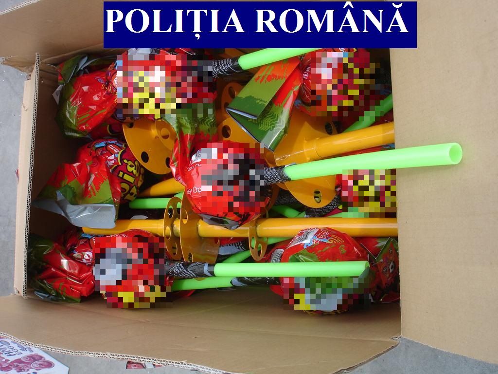 În urma controlului containerului, poliţiştii au descoperit 5.940 de produse alimentare (acadele), susceptibile a fi contrafăcute. Bunurile, în valoare de aproximativ 140.000 de lei, au fost ridicate în vederea continuării cercetărilor.