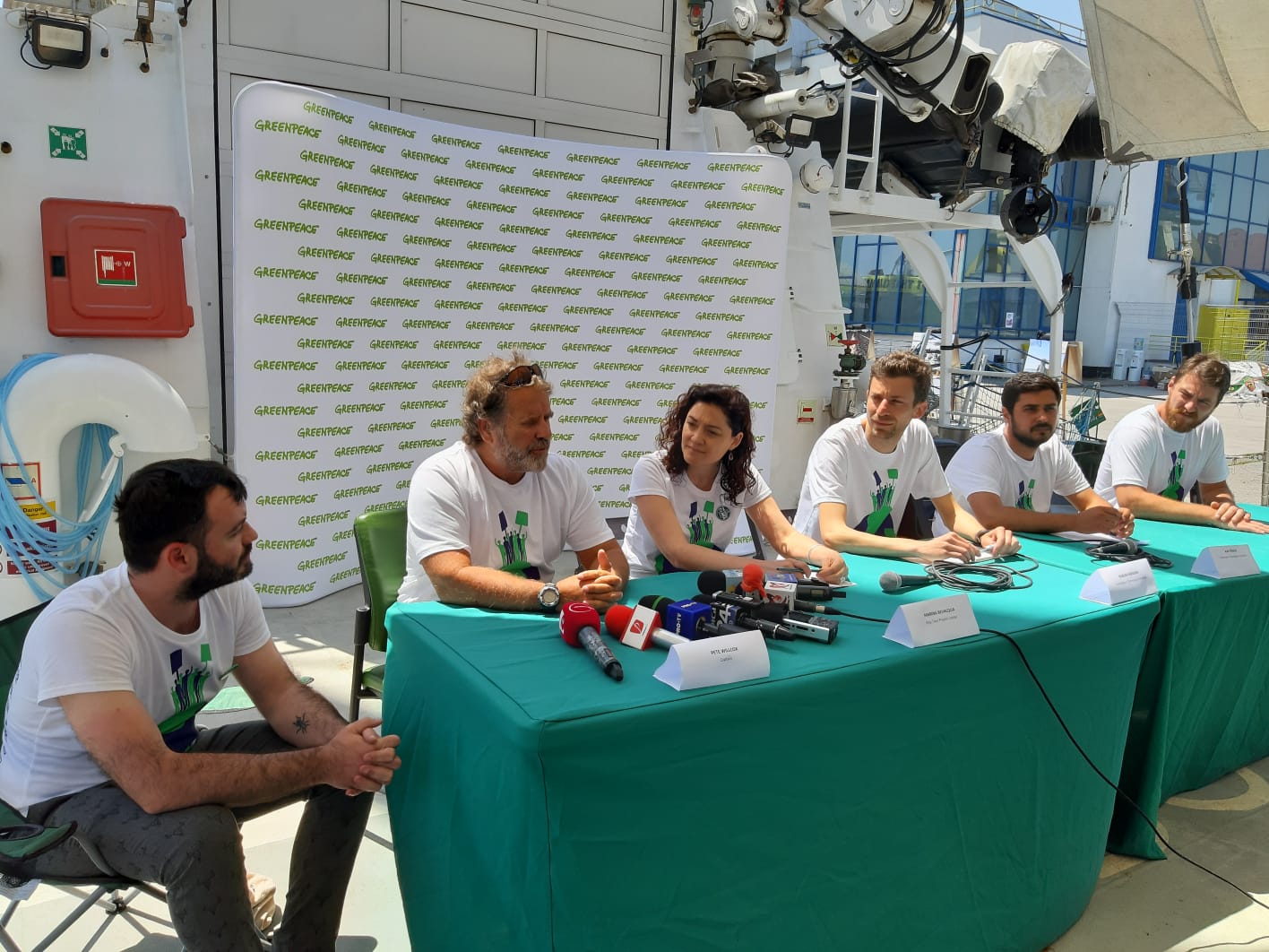 Marian Mândru – În Portul Constanța începe un tur european prin care promovăm energia regenerabilă și tragem un semnal foarte important de alarmă că acești combustibili fosili, mai ales cărbunele, sunt extrem de poluatori și afectează grav clima planetei. E un tur de mai multe luni care începe la Constanța.
