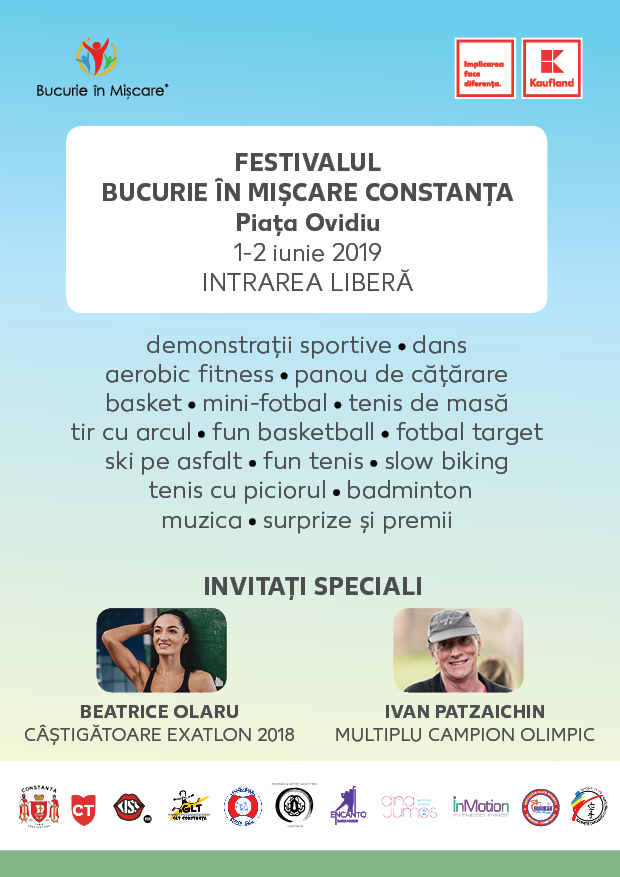 Prima ediție a festivalului „Bucurie în Mișcare Constanța” se va desfășura în Piața Ovidiu, sâmbătă, 1 iunie și duminică, 2 iunie, de la ora 10:00.