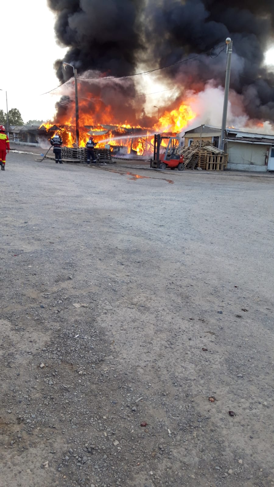 Un incendiu puternic a izbucnit în această după – amiază, la Târgul de legume – fructe de pe varianta Constanţa – Ovidiu. Pompierii intervin şi la această oră pentru stingerea flăcărilor.