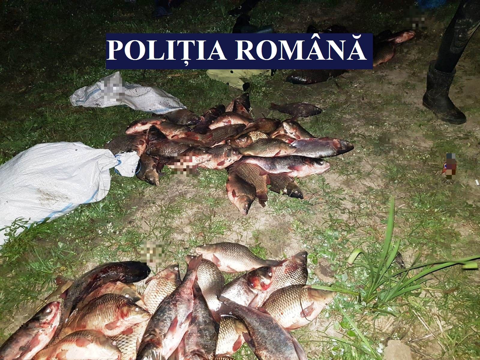 În acest context, polițiștii au depistat în flagrant delict 4 persoane în timp ce ar fi încărcat, într-un autoturism, mai mulți saci din rafie, conținând peste 140 de kilograme de pește, din speciile crap, novac și somn.