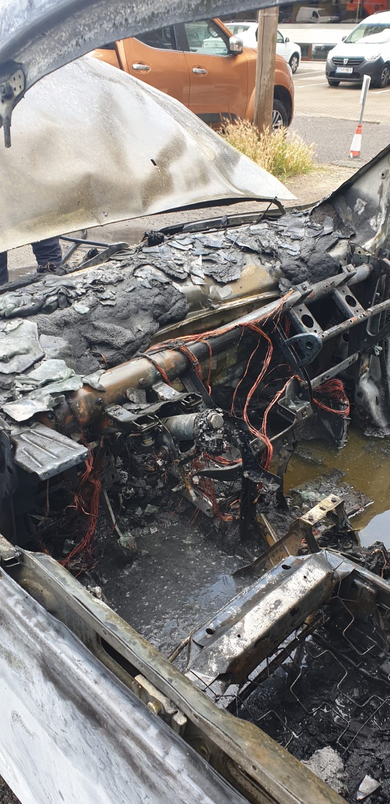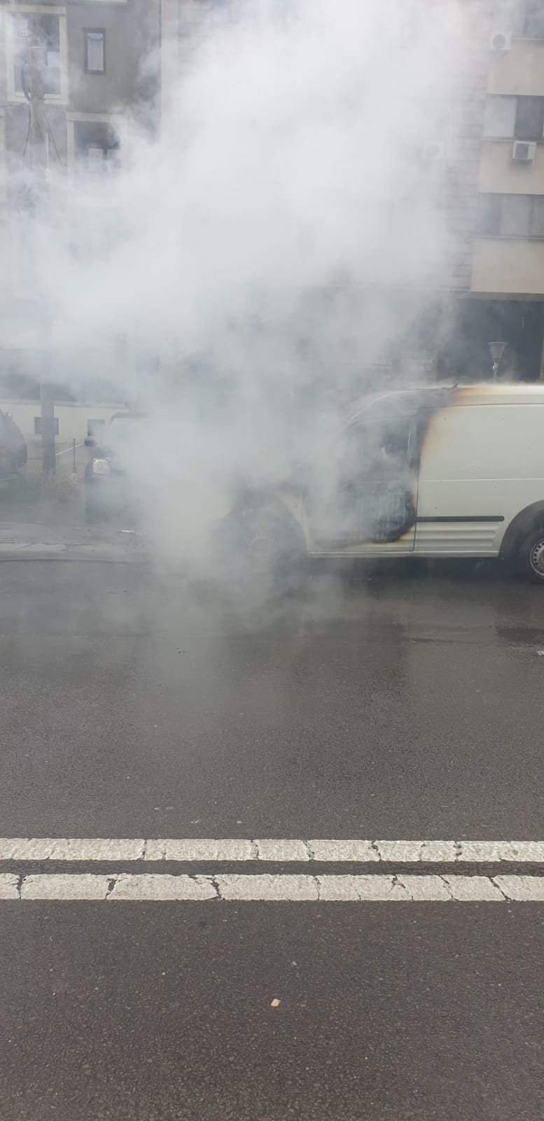 CONSTANȚA: Trafic rutier restricţionat la intrarea în staţiunea Mamaia, după ce o autoutilitară a luat foc în mers – FOTO