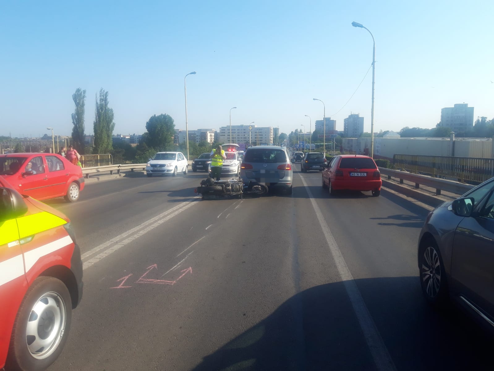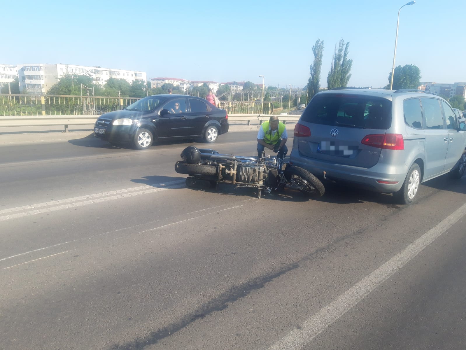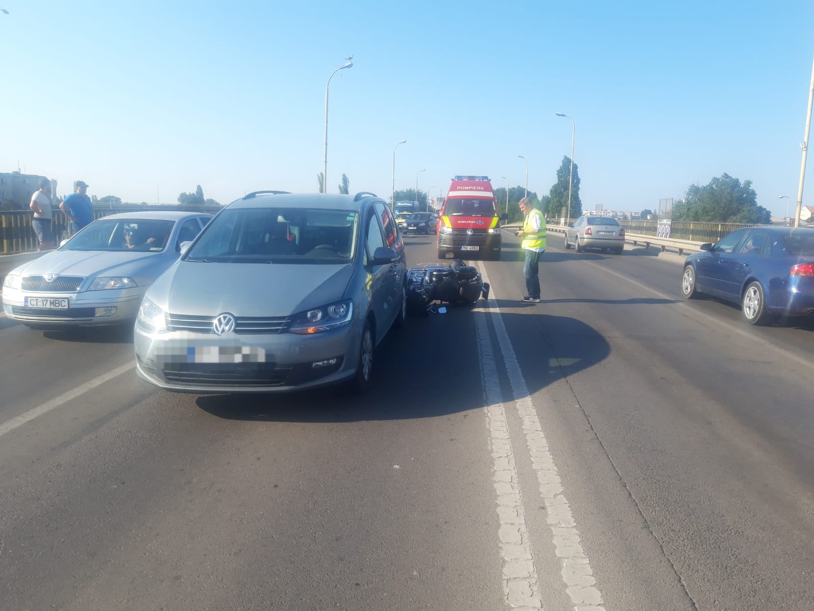 Un accident rutier a avut loc astăzi, pe Șoseaua Mangaliei, în urma căruia o persoană a fost rănită. Potrivit Poliției, o femeie, de 41 ani, a condus o motocicletă şi din cauza faptului că nu a păstrat distanța regulamentară, a intrat în coliziune cu o mașină condusă de o șoferiță de 38 de ani.