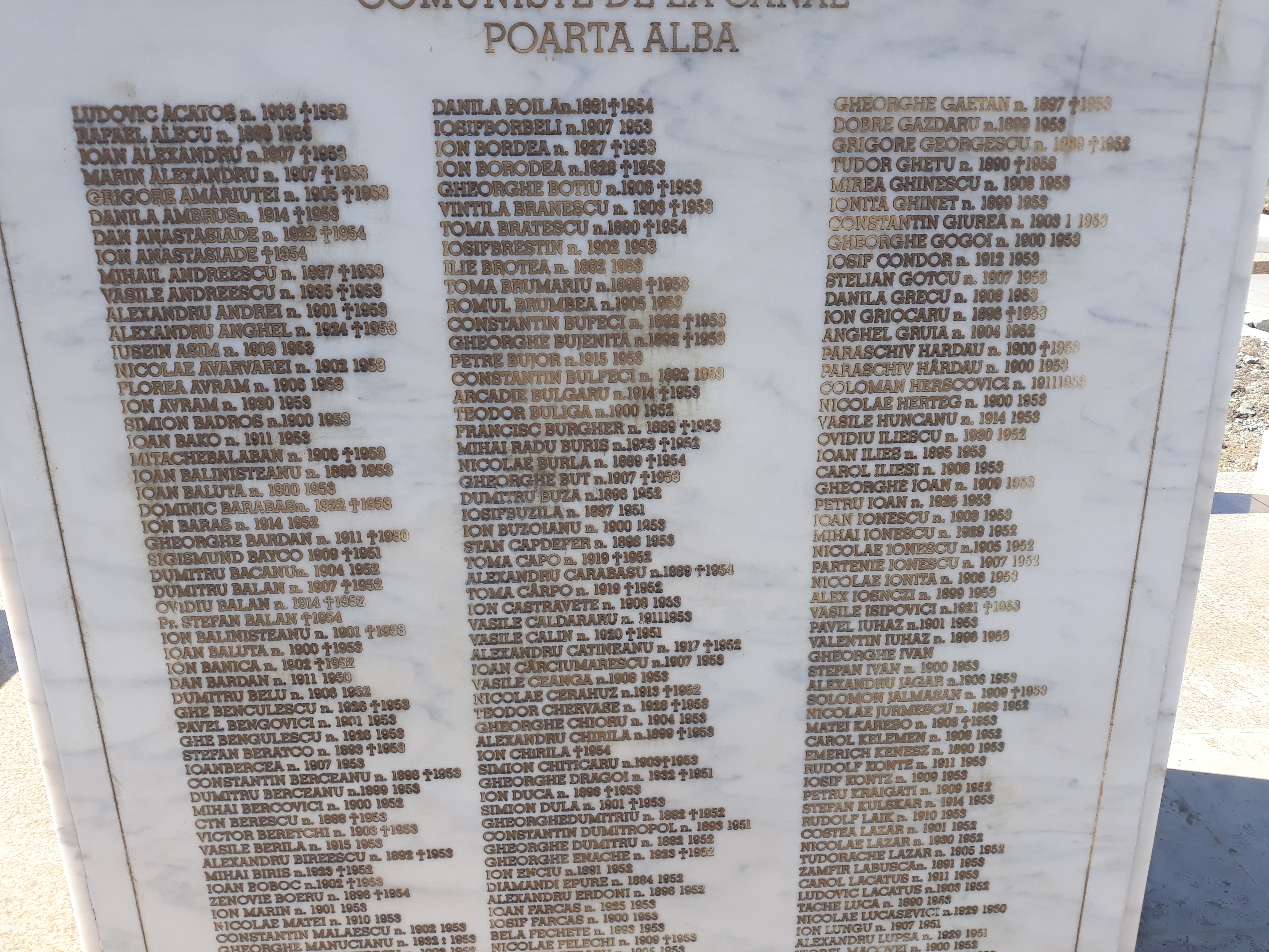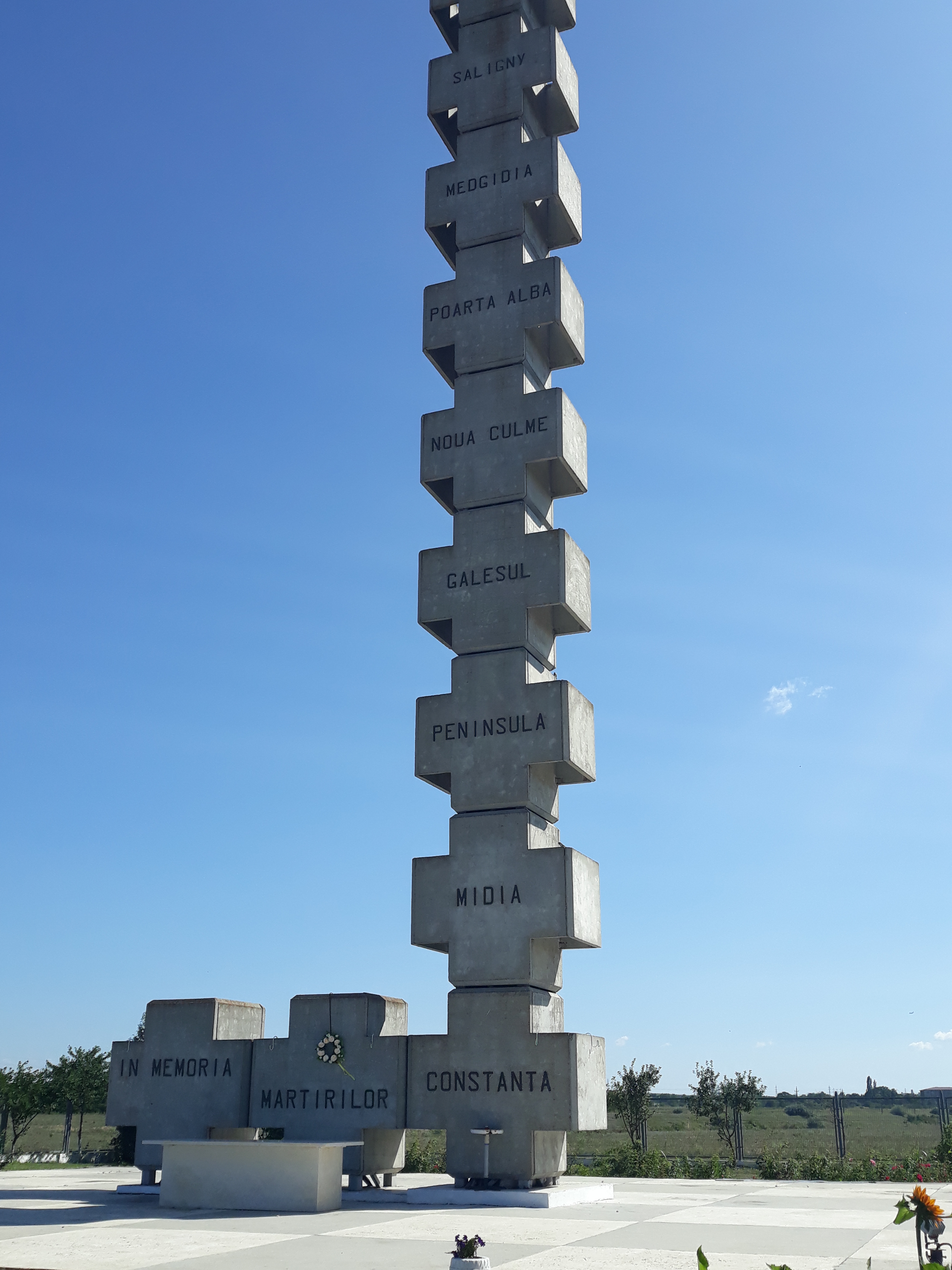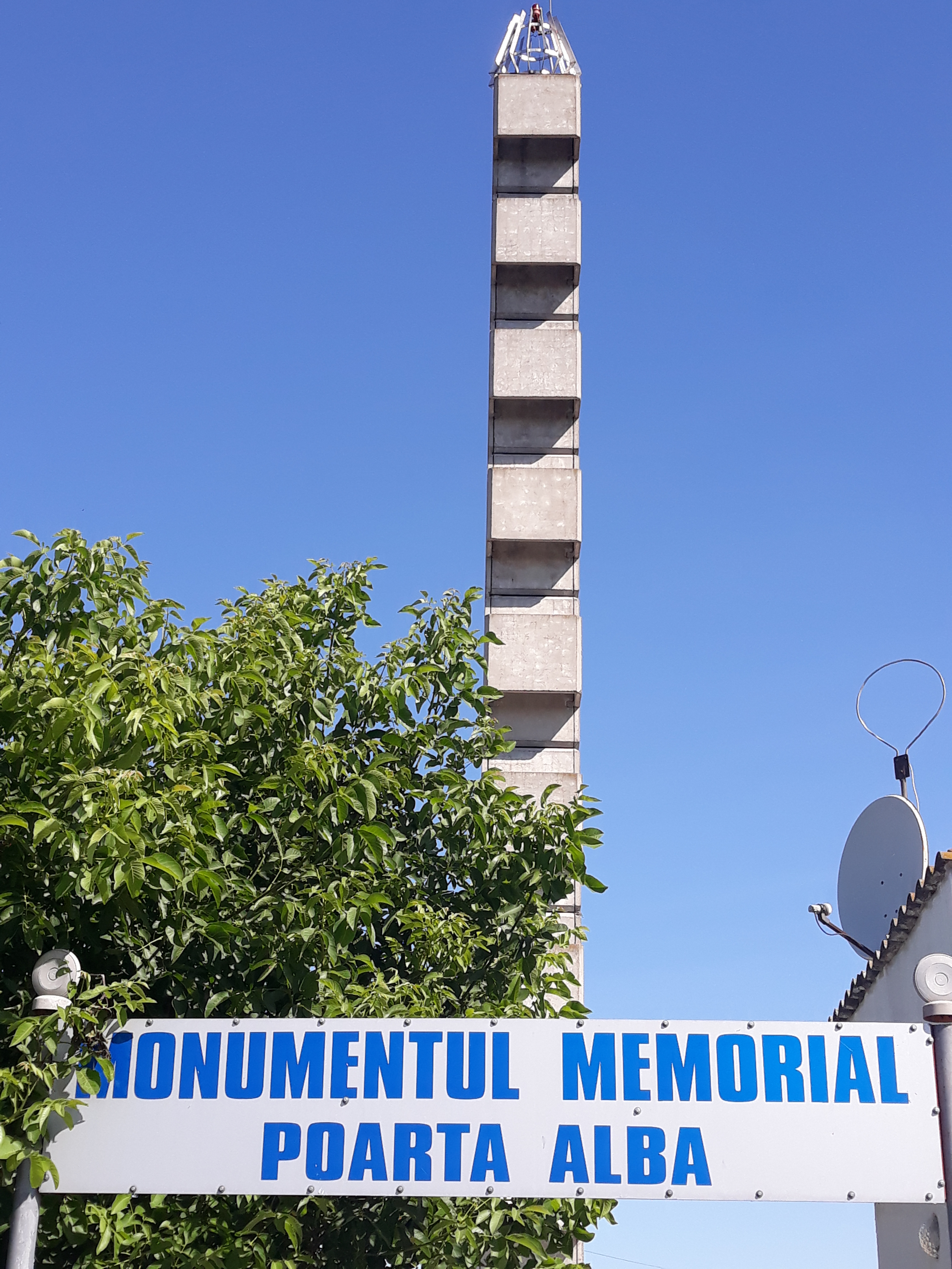 Inițiativa ridicării Monumentului Memorial de la Poarta Albă aparține Asociației Foștilor Deținuți Politici din România –filiala Constanța. Monumentul are înălțimea de 24 m , construit pe 9 module pe verticală –câte colonii de muncă au fost și 2 pe orizontală, pentru a forma crucea –simbolul jertfei. A fost sfințit la 21 septembrie 2000. Autorul proiectului este arhitect Ioan Pușchilă, el însuși deținut politic în coloniile canalului.