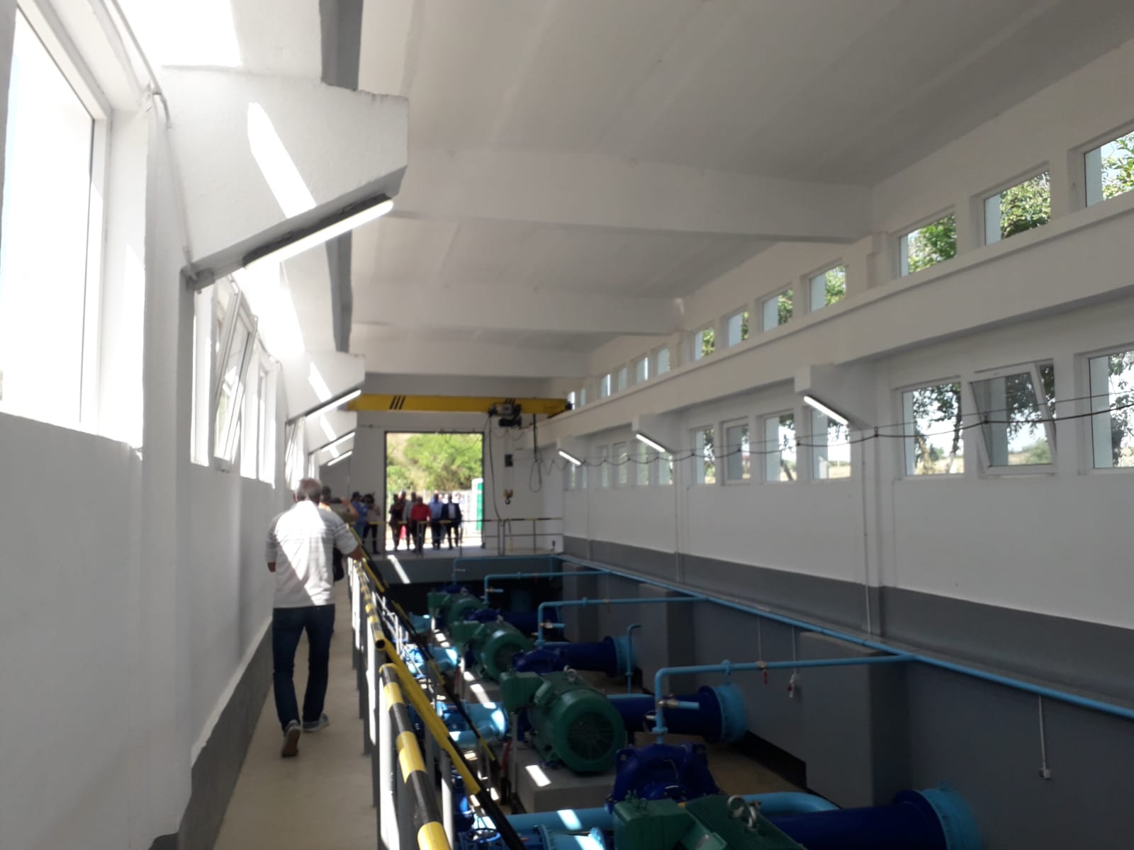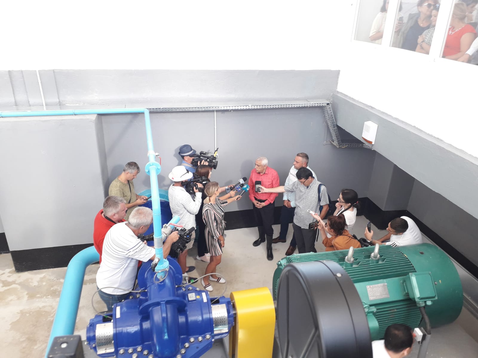 Petre Daea a ținut să felicite constructorul care a realizat lucrările de modernizare la stația de pompare Galeșu, lucrări realizate mult mai devreme decât termenul contractat inițial (termenul de execuție era de 24 de luni, lucrările demarând în luna martie 2018).